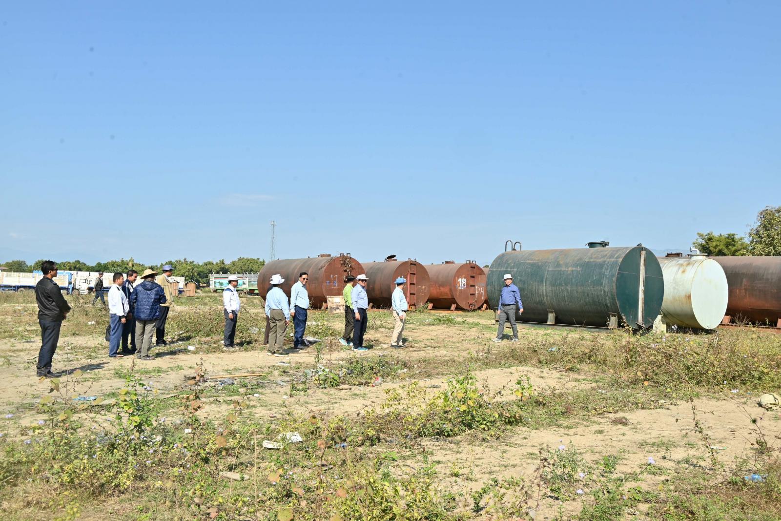 ယင်းနောက် ပြည်နယ်ဝန်ကြီးချုပ်နှင့် အဖွဲ့ဝင်များသည် အဆိုပါစိုက်ကွင်းဘေးရှိ စက်သုံးဆီ သိုလှောင်ဖြန့်ဖြူးရေးအတွက် တွဲကားကြီးများနှင့် စက်သုံးဆီသိုလှောင်နိုင်သည့် ဆီတိုင်ကီများနှင့် နယ်စပ်ကုန်သွယ်ရေး ကုန်တင်ကားကြီးများ ရပ်နားထားရှိမှု အခြေအနေများကို ကြည့်ရှုစစ်ဆေးခဲ့ ကြကြောင်း သိရသည်။
