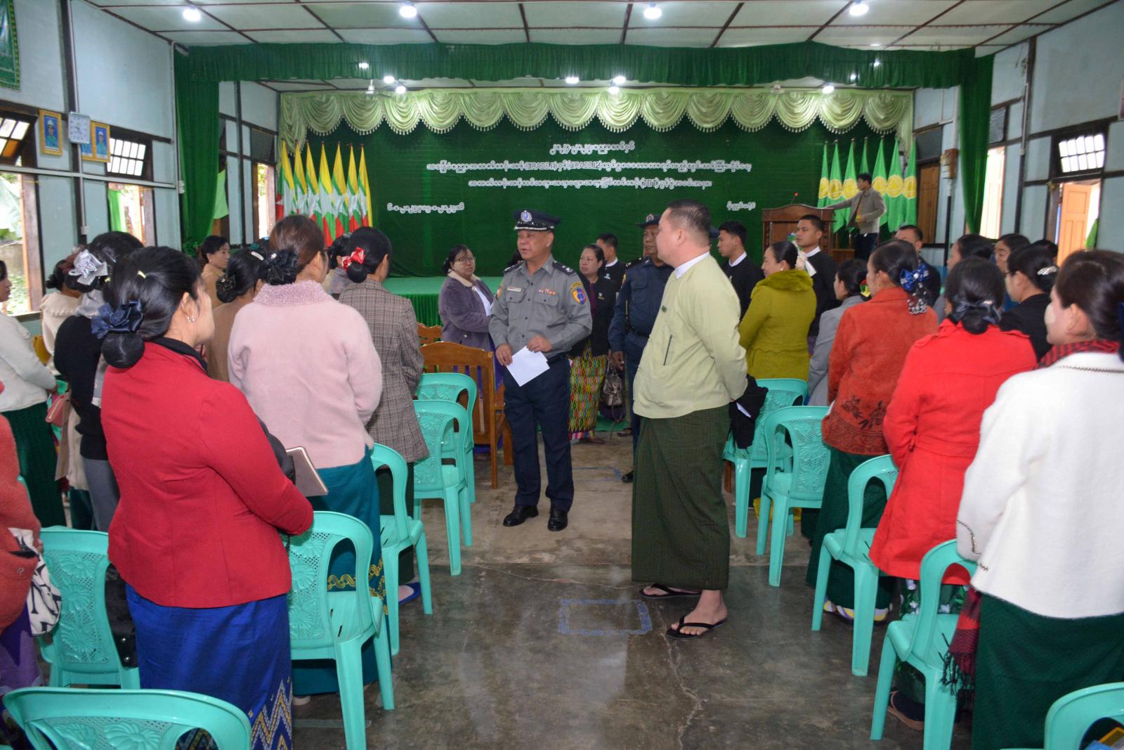 ရှေးဦးစွာ အခမ်းအနားတွင် ခရိုင်စီမံအုပ်ချုပ်ရေးအဖွဲ့အတွင်းရေးမှူး ခရိုင်ရဲတပ်ဖွဲ့မှူး ဒုတိယရဲမှူးကြီး ခင်မောင်ကျော်က အခြေခံပညာအထက်တန်းဆင့် Grade-11 နှင့် Grade-12 ကျောင်းသား/သူများအတွက် ဥပဒေအသိပညာပေးရေး ဆရာဖြစ်သင်တန်းနှင့်ပတ်သက်၍ အဖွင့်အမှာစကားပြောကြားပြီး ခရိုင်ဥပဒေအရာရှိ ဒေါ်ငြိမ်းလှိုင်က သင်တန်းဖွင့်လှစ်ရခြင်း၏ ရည်ရွယ်ချက်များနှင့်ပတ်သက်၍ ရှင်းလင်းပြောကြားသည်။