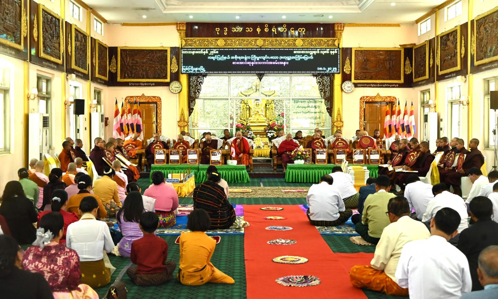ဆက်လက်၍ ပြည်နယ်အစိုးရအဖွဲ့ဝင် လူမှုရေးရာဝန်ကြီးဦးမိုးမင်းသိန်းက သာသနာရေးဆိုင်ရာများကို လျှောက်ထားတင်ပြပြီး ပြည်နယ်ဝန်ကြီးချုပ်နှင့် တာဝန်ရှိသူများ၊ အလှူရှင်များက သံဃာတော်များထံ လှူဖွယ်ပစ္စည်းများနှင့်ဝတ္ထုငွေများကို ဆက်ကပ်လှူဒါန်းကြသည်။