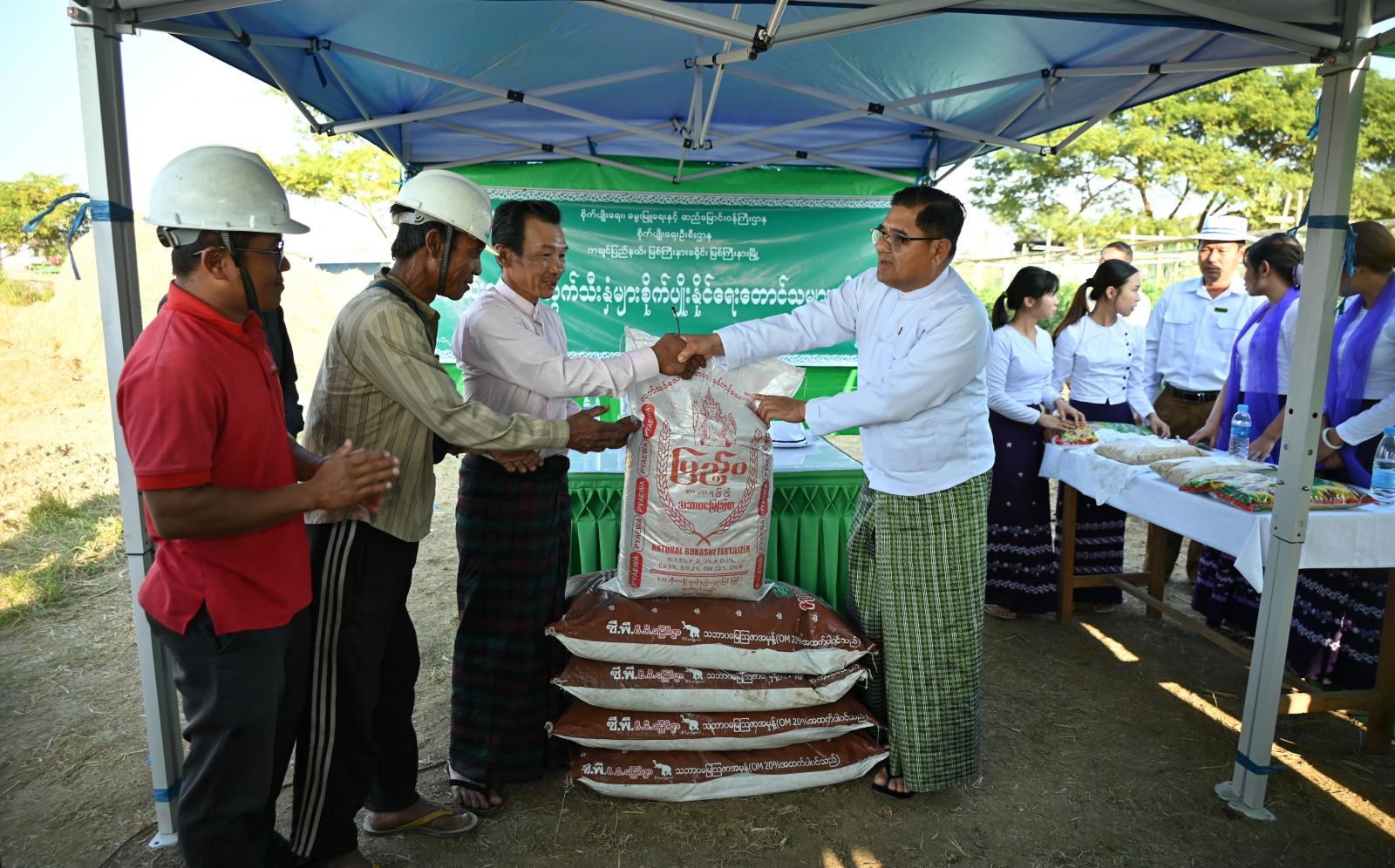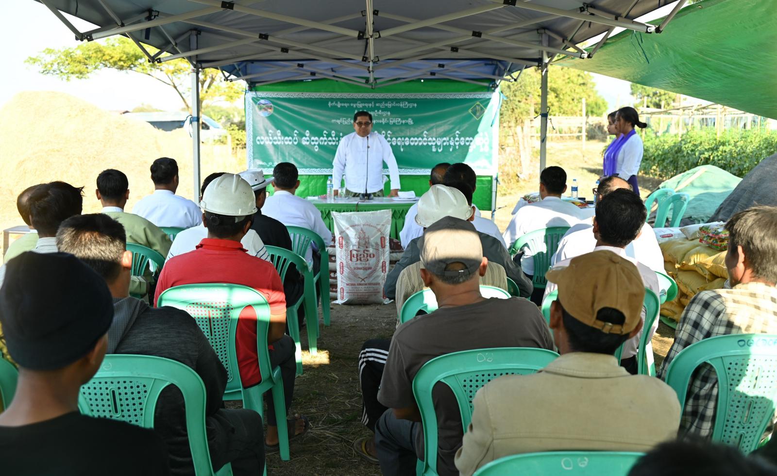 ဆက်လက်၍ အဆိုပါကွင်းအတွင်းရှိ တောင်သူများကကွင်းအတွင်း သီးထပ်စိုက်ပျိုးနိုင်ရေး လိုအပ်သည်များကိုတင်ပြကြရာ ပြည်နယ်ဝန်ကြီးချုပ် သက်ဆိုင်ရာကဏ္ဍအလိုက် ပြည်နယ်အဆင့် ဌာနဆိုင်ရာတာဝန်ရှိသူများနှင့် ပေါင်းစပ်ညှိနှိုင်း၍ ဖြည့်ဆည်းဆောင်ရွက်ပေးခဲ့ပြီး သီးထပ်စိုက်ပျိုးမည့် တောင်သူများအတွက် ဆီထွက်သီးနှံနေကြာနှင့် ပဲပုပ်မျိုးစေ့အိတ်များ၊ သဘာဝမြေသြဇာအိတ်များကို ချီးမြှင့်ပေးအပ်ခဲ့ကြသည်။