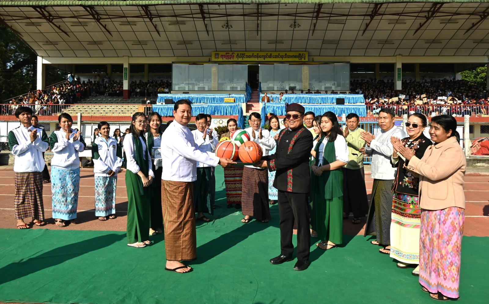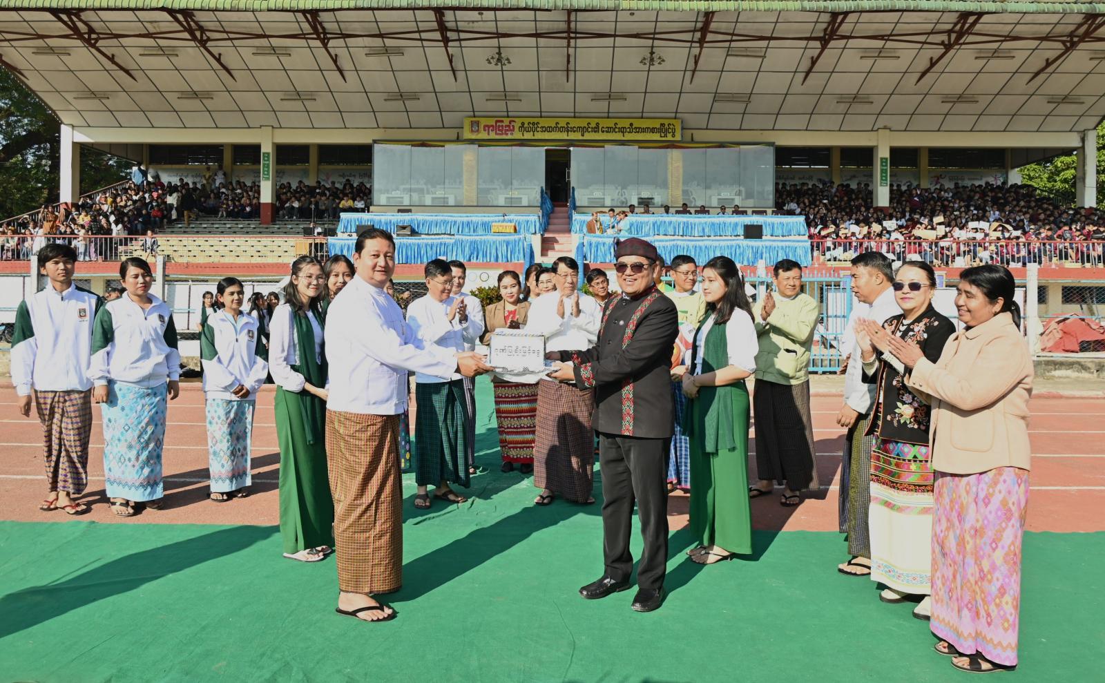 ရှေးဦးစွာ ပြည်နယ်ဝန်ကြီးချုပ်က ပြိုင်ပွဲဝင်အားကစားအသင်းများအား ကျောင်းသား/ ကျောင်းသူများအနေဖြင့် ယနေ့ပြိုင်ပွဲမှ အားကစားကိုပိုမိုစိတ်ဝင်စား ချစ်မြတ်နိုးလာစေရေန်၊ အားကစားဖြင့် ကြံ့ခိုင်သန်စွမ်းပြီး စည်းလုံးညီညွတ်စွာ ပူးပေါင်းဆောင်ရွက်တတ်လာစေရန် အားကစားနည်းစနစ်များနှင့်စည်းကမ်းများအတိုင်း ယှဉ်ပြိုင်ကြရမည်ဖြစ်ပါကြောင်း၊ ထို့အပြင်အားကစားစိတ်ဓာတ်ကို အခြေခံပြီးပညာရည်ပြည့်ဝသော ထူးချွန်လူငယ်များအဖြစ် ဒေသအကျိုး၊ တိုင်းပြည်အကျိုးကို သယ်ပိုးနိုင်သောသူများဖြစ်အောင် ကြိုးစားကြစေလိုကြောင်း တိုက်တွန်းမှာကြားသည်။