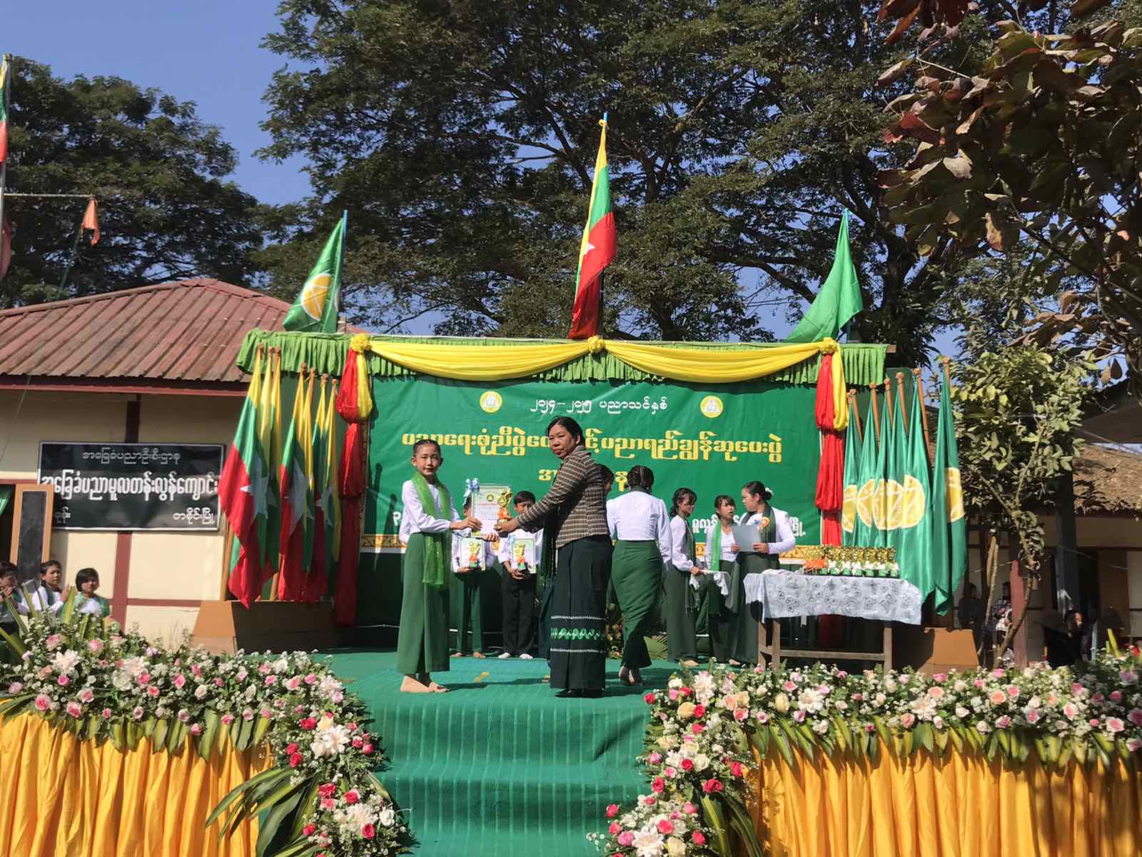 ထို့နောက် (၂၀၂၄-၂၀၂၅) ပညာသင်နှစ် စာပေနှင့် ဖွံ့ဖြိုးရေးထူးချွန်ဆုရရှိသူများ၊ အတန်းအလိုက် ဆုရရှိသူများ၊ စာစီစာကုံးပြိုင်ပွဲတွင် ဆုရရှိသူများ၊ စွမ်းရည်ပြိုင်ပွဲများတွင် ဆုရရှိကြသူများနှင့် ထူးချွန်ဆုရရှိကြသည့် ကျောင်းသား/ကျောင်းသူများအား ဂုဏ်ပြုမှတ်တမ်းလွှာနှင့် ဂုဏ်ပြုဆုများ အသီးသီးပေးအပ်ချီးမြင့်ခဲ့ကြပြီး ကျောင်းသား/ ကျောင်းသူလေးများ၏ တေးသရုပ်ဖော် အကအလှများဖြင့် ဖျော်ဖြေတင်ဆက်မှုကို ကြည့်ရှုအားပေးခဲ့ကြကြောင်း သိရသည်။