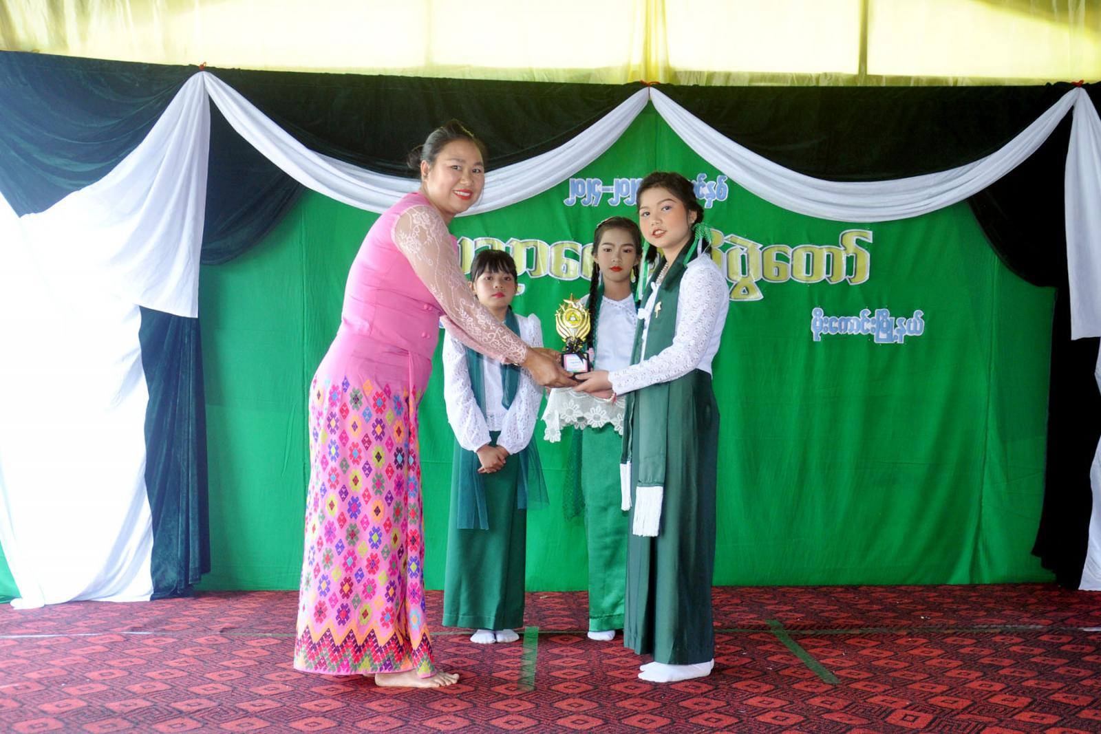 ထို့နောက် အဆိုပါကျောင်းမှ ကျောင်းသား၊ ကျောင်းသူများက “အလှကမ္ဘာမြေ၊ အဆိုးလေး၊ အချစ်ရဲ့ကိုယ်ရံဝော်၊ နေကာမျက်မှန်၊ ရှင့်ကို၊ ခင်ခင်ထား၊ movie စက်ရုပ်အက၊ ရွှင်လန်းချမ်းမြေ့ပါစေ”တေးသီချင်းများဖြင့် ကပြဖျော်ဖြေကြောင်း သိရသည်။