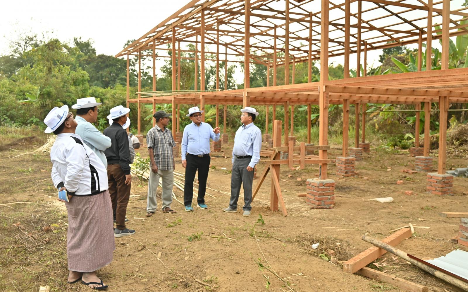 ထို့မှတစ်ဆင့် ပြည်နယ်ဝန်ကြီးချုပ်နှင့် တာဝန်ရှိသူများသည် မော်ဖောင်းကျေးရွာအုပ်စု၊ ငအိုးကျေးရွာအတွင်း နိုင်ငံ့စီးပွားမြှင့်တင်ရေး ရန်ပုံငွေ မတည်ပေးမှုဖြင့် အကျိုးဖြစ်ထွန်း အောင်မြင်လျက် ရှိသော တောင်သူ ဦးဆင်ဝါးနော်၏ ခြံသို့ သွားရောက်ကာ အသားတိုးဝက်ကောင်ရေ (၉၀) မွေးမြူထားရှိမှုအခြေအနေများနှင့် ကြက်သားပေါက်နှင့် ကြက်ကြီးမွေးမြူခြံအသစ်များ ထပ်မံတိုးချဲ့တည် ဆောက်နေမှု၊ မွေးမြူရေးလုပ်ငန်းများ ဆောင်ရွက်သွားမည့် အစီအစဉ်များကိုလည်းကောင်း၊ ခြံဝင်းအတွင်း ပင်မှည့်သီးပင် (၃၀၀) စိုက်ပျိုးဆောင်ရွက်နေမှု အခြေအနေများကို ပူးပေါင်းပါဝင် ကူညီ ဆောင်ရွက်ပေးခဲ့ပြီး လိုအပ်သည်များကို မေးမြန်းဆွေးနွေးကာ နည်းစနစ်တကျ စိုက်ပျိုးနိုင်ရေး တာဝန်ရှိသူများနှင့် ပေါင်းစပ်ညှိနှိုင်းဆောင်ရွက်ပေးခဲ့သည်။