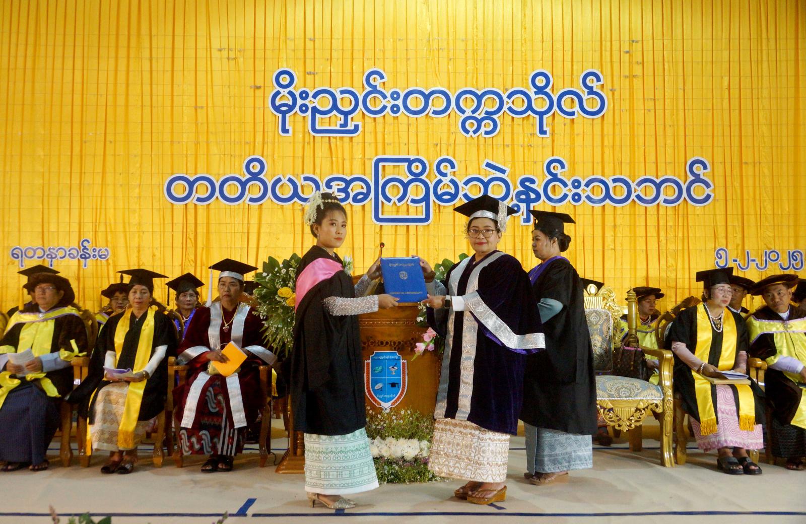 ကချင်ပြည်နယ်၊ မိုးညှင်းခရိုင်၊ မိုးညှင်းတက္ကသိုလ်တွင် တတိယအကြိမ်မြောက် ဘွဲ့နှင်းသဘင်အခမ်းအနားကို ယနေ့နံနက် (၉)နာရီမှစတင်၍ တက္ကသိုလ်ရတနာခန်းမ၌ ကျင်းပကြောင်း သိရသည်။