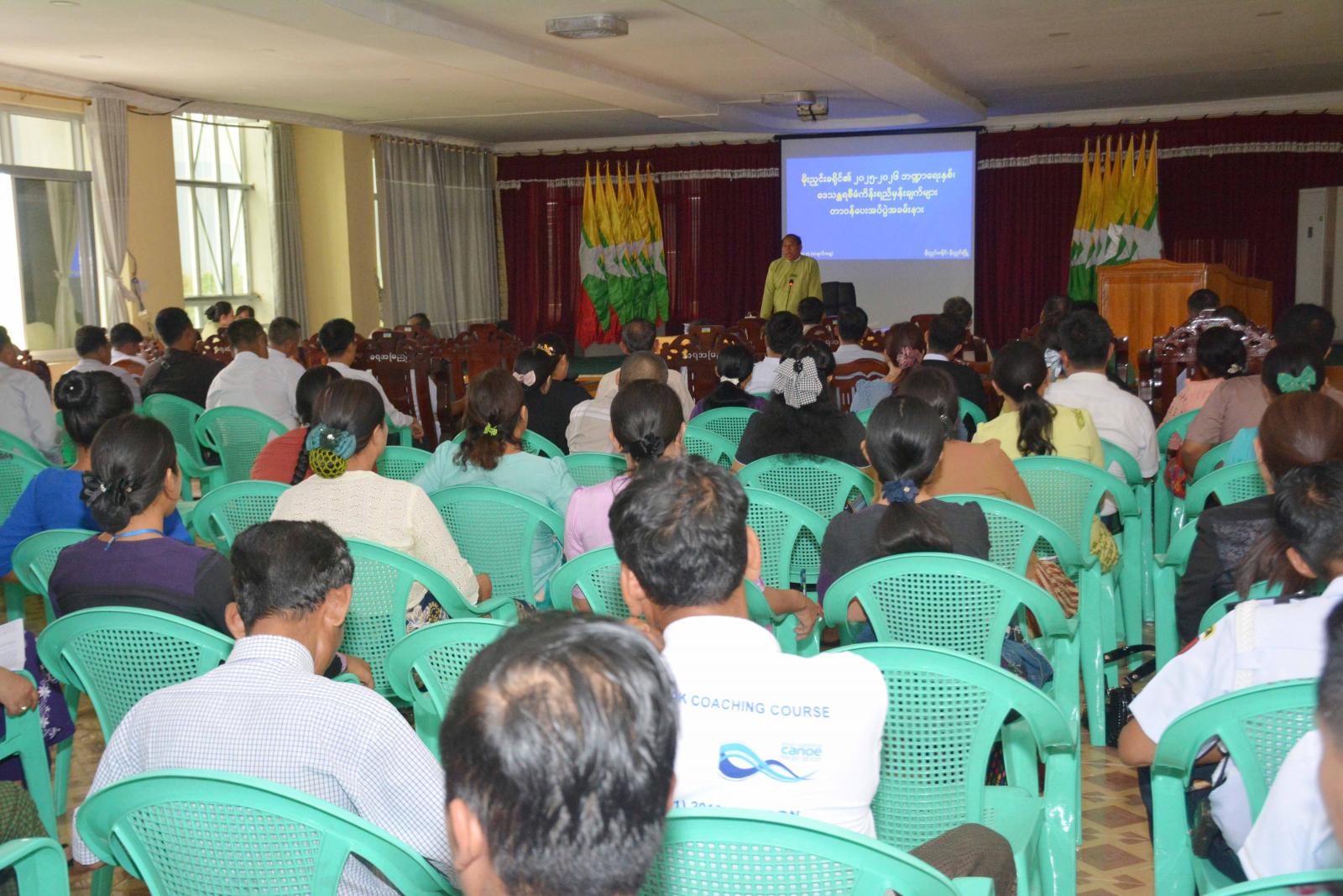 ရှေးဦးစွာ ခရိုင်စီမံကိန်းရေးဆွဲ အကောင်အထည်ဖော်ရေးကော်မတီ ဥက္ကဋ္ဌ ဦးညီညီလွင်က အဖွင့်အမှာစကားပြောကြာရာတွင် နိုင်ငံတော်၏ အမျိုးသားရေးရည်မှန်းချက်ဖြစ်သည့် တိုင်းပြည် သာယာဖွံဖြိုးရေးနှင့် စားရေရိက္ခာဖူလုံရေးအတွက် နည်းလမ်းများစွာဖြင့် ဆောင်ရွက်လျက်ရှိရာ မြို့နယ်များ၏ ယခုဘဏ္ဍာရေးနှစ် ဒေသန္တရစီမံကိန်းကိုလည်း မြို့နယ်သာယာဝပြော ဖွံ့ဖြိုးတိုး တက်ရေးနှင့် စားရေရိက္ခာဖူလုံရေးတို့ကို ရည်မှန်းချက်များထားရှိပြီး နိုင်ငံတော်၏ ရှေ့လုပ်ငန်း စဉ်များ၊ ဦးတည်ချက်များနှင့်အညီ လူမှုစီးပွားဖွံဖြိုးတိုးတက်မှု အထောက်အကူပြု လုပ်ငန်းစီမံကိန်းများကို ဦးစားပေးလျာထားပြီးဖြစ်သည့်အတွက် ယခုဘဏ္ဍာရေးနှစ် ဒေသန္တရစီမံကိန်းရည်ရွယ်ချက်များကို အကောင်အထည်ဖော်ဆောင်ရွက်ရန် ဘက်ပေါင်းစုံမှ ဆောင်ရွက်သွားမည် ဖြစ်ကြောင်းပြောကြားသည်။