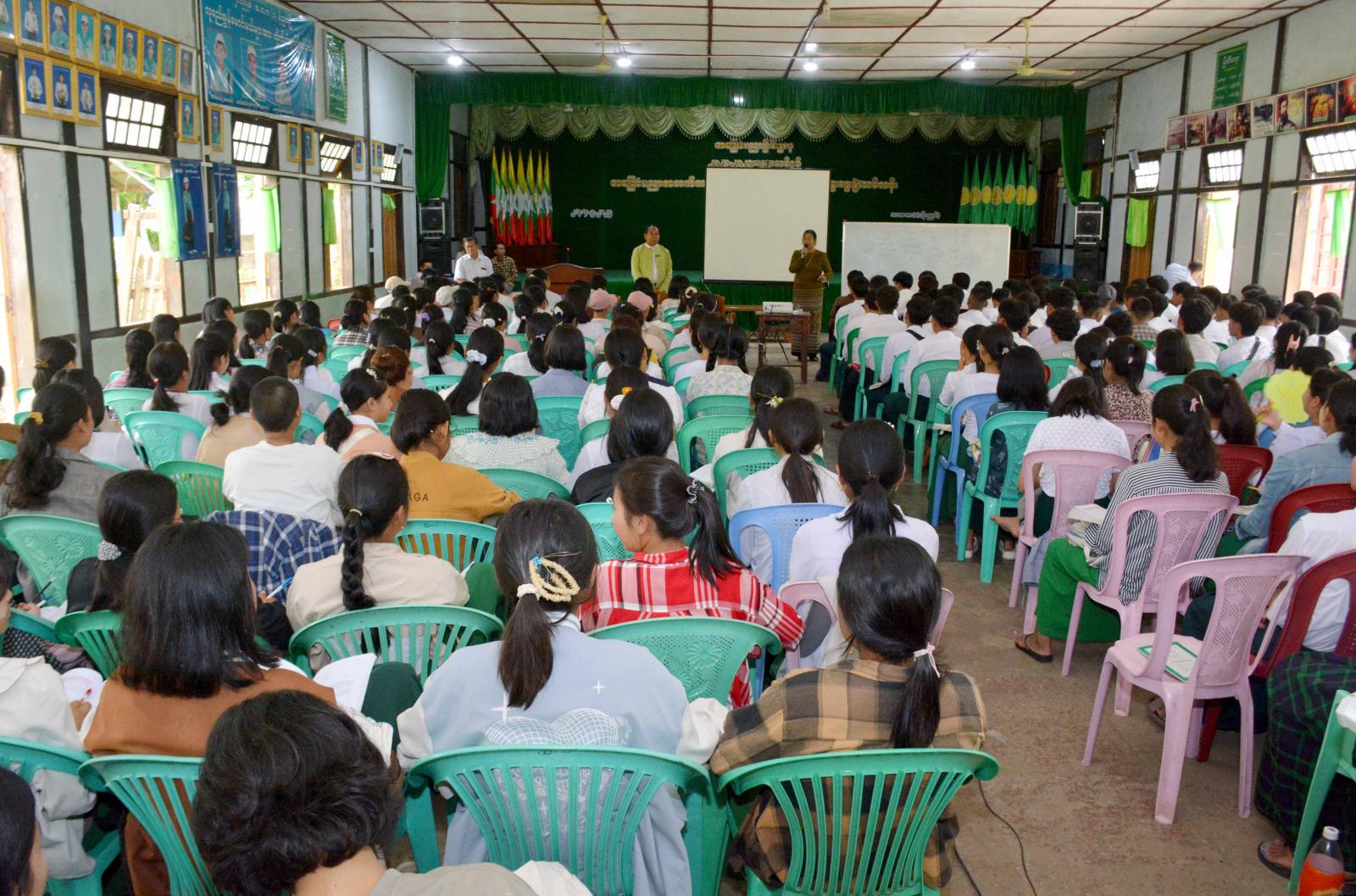 ထို့အတူ မွန်းလွဲပိုင်းတွင် ခရိုင်စီမံအုပ်ချုပ်ရေးအဖွဲ့ဥက္ကဋ္ဌနှင့် တာဝန်ရှိသူများက အမှတ်(၁)နှင့် အမှတ်(၂)အခြေခံပညာအထက်တန်းကျောင်းများတွင် စခန်းသွင်းလေ့ကျင့်မည့် ကျောင်းသား၊ ကျောင်းသူများအား အဆင်ပြေချောမွေ့စွာ ပညာသင်ကြားနိုင်ရေးနှင့် အောင်ချက်မြင့်မားနိုင်ရေးတို့အတွက် Grade -12 သင် ဆရာ၊ ဆရာမများ၊ ကျောင်းသားမိဘကော်မတီဝင်များနှင့် တွေ့ဆုံဆွေးနွေးကြရာ ၎င်းဆွေးနွေးချက်များအပေါ် လိုအပ်သည်များကို ခရိုင်စီမံအုပ်ချုပ်ရေးအဖွဲ့ ဥက္ကဋ္ဌက သက်ဆိုင်ရာတာဝန်ရှိသူများနှင့် ပေါင်းစပ်ညှိနှိုင်း ဆောင်ရွက်ပေးခဲ့ကြောင်း သိရသည်။