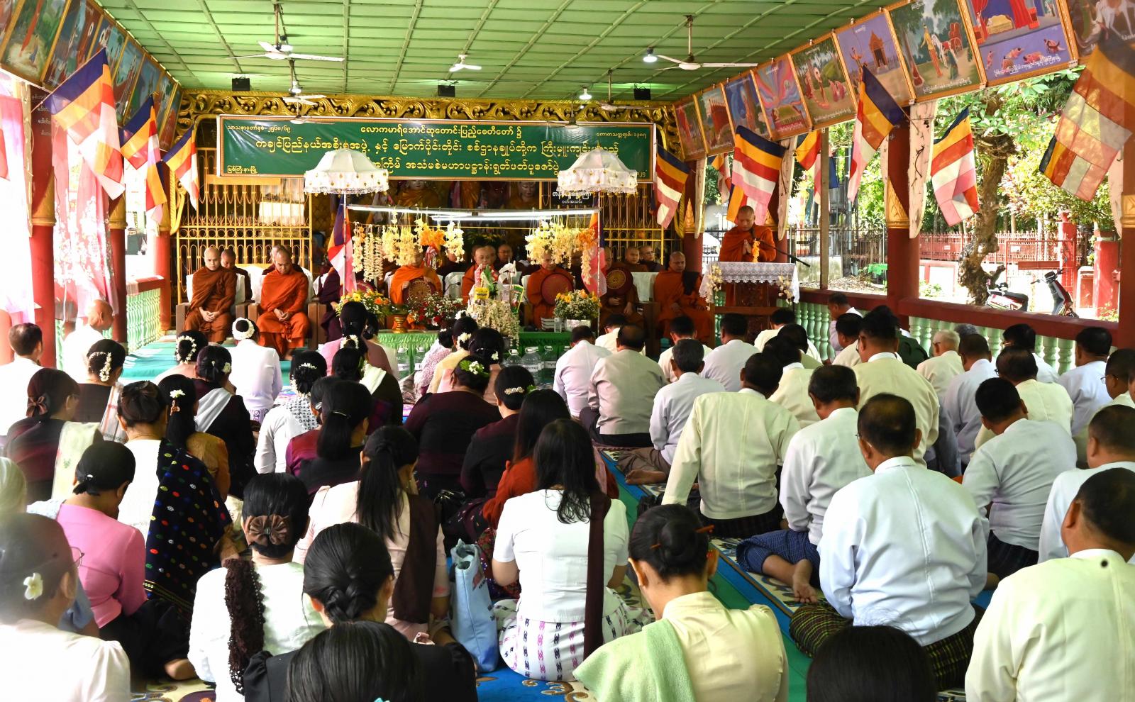 ထို့နောက် ဆရာတော်များထံမှ ပြည်နယ်ဝန်ကြီးချုပ် ဦးခက်ထိန်နန်နှင့် ဇနီးဒေါ်နန်ဆိုင်း၊ ပြည်နယ်တရားလွှတ်တော် တရားသူကြီးချုပ် ဒေါ်အေးအေးမော်၊ ပြည်နယ်အစိုးရအဖွဲ့ဝင် ဝန်ကြီး များနှင့် ၎င်းတို့၏ဇနီးများ၊ ပြည်နယ်ဥပဒေချုုပ်၊ ပြည်နယ်အဆင့်ဌာနဆိုင်ရာများ၊ ဖိတ်ကြားထားသော ဧည့်သည်တော်များက ငါးပါးသီလခံယူဆောက်တည်ကြပြီး ပဋ္ဌာန်းဒေသနာ ရွတ်ဖတ်ရန်အတွက် တိုက်တွန်းနှိုးဆော်လွှာဂါထာဖြင့် ပူဇော်ခဲ့ကြကာ ပြည်နယ်အစိုးရအဖွဲ့ဝင် စီးပွားရေးရာဝန်ကြီး ဦးမျိုးဆွေက သာသနာရေးဆိုင်ရာများကို လျှောက်ထားတင်ပြသည်။