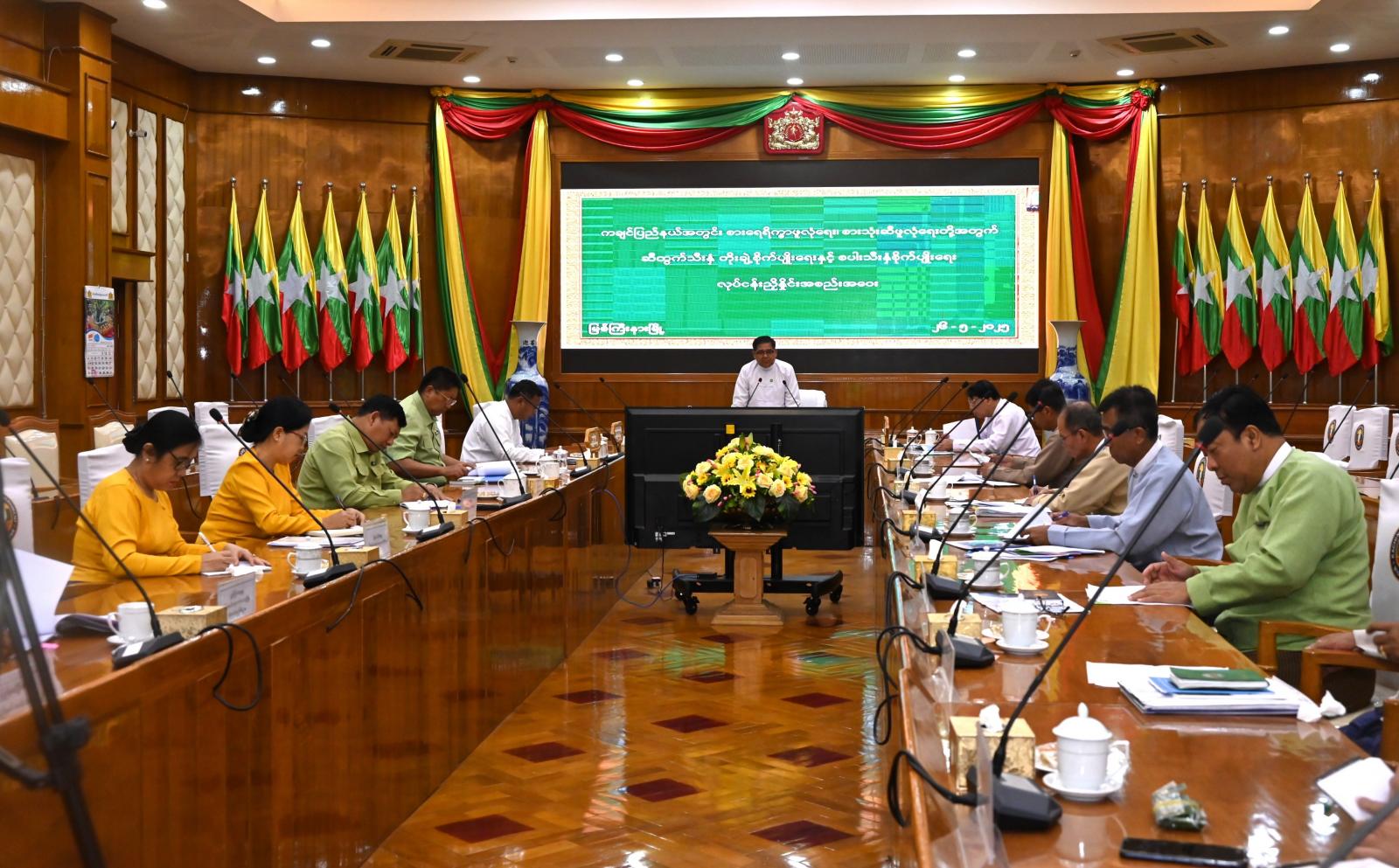 ရှေးဦးစွာ ပြည်နယ်ဝန်ကြီးချုပ်က ပြည်နယ်အတွင်း ဒေသအလိုက် ဝမ်းစာဖူလုံလာစေရေး၊ ဆီထွက်သီးနှံစိုက်ဧက တိုးချဲ့စိုက်ပျိုးနိုင်ရေးအတွက် ကြိုးပမ်းဆောင်ရွက်သွားကြရမည်ဖြစ်ပါကြောင်း၊ ထိုသို့ဆောင်ရွက်ရာတွင်လည်း ဒေသနှင့်ကိုက်ညီပြီး ပန်းတိုင်အထွက်နှုန်းရရှိစေရေန်၊ မိုးစပါးစိုက်လယ်များတွင် တိုးချဲ့စိုက်ပျိုးလာစေရန် အနီးကပ်ကြီးကြပ်ဆောင်ရွက်လျက်ရှိပါကြောင်း၊ ထို့အပြင် သွင်းအားစုများ ဖြည့်ဆည်းပံ့ပိုးပေးနိုင်ရေးနှင့် လိုအပ်သည်များကို အချိန်မီဖြည့်ဆည်းပေးရန် လိုအပ်မည်ဖြစ်ပါကြောင်း၊ စိုက်ပျိုးရေးလုပ်ငန်းအပြင် ဒေသတွင်းကြိတ်ခွဲထုတ်လုပ်နိုင်ရေး ဆန်နှင့် ဆီကြိတ်ခွဲများကို အဆင့်မြှင့်တင်ခြင်း၊ အသစ်တိုးချဲ့တည်ထောင်နိုင်ရေးအတွက် ပံ့ပိုးကူညီမှုများကို စဉ်ဆက်မပြတ် ဆောင်ရွက်ပေးခဲ့ပါကြောင်း၊ သို့ဖြစ်ပါ၍ ယနေ့သက်ဆိုင်ရာခရိုင်နှင့် မြို့နယ်များအလိုက် နှစ်အလိုက်အမှန်တကယ် စိုက်ပျိုးနိုင်မှုအပေါ်အခြေခံ၍ သက်ဆိုင်ရာဌာနအလိုက် သုံးသပ်ဆွေးနွေး၍ တစ်နှစ်ထက်တစ်နှစ် ပိုမိုတိုးတက်လာအောင် အားလုံးကဝိုင်းဝန်းဆောင်ရွက်သွားရမည်ဖြစ်ပါကြောင်း တိုက်တွန်းမှာကြားသည်။