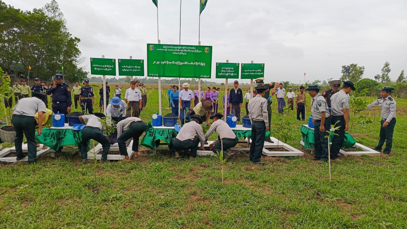 ထို့နောက် မြို့နယ်စီမံအုပ်ချုပ်ရေးအဖွဲ့ဥက္ကဋ္ဌနှင့်အဖွဲ့ဝင်များ၊ မြို့နယ်သစ်တောဦးစီးဌာနမှ ဦးစီးအရာရှိနှင့်ဝန်ထမ်းများ၊ မြို့နယ်အဆင့်ဌာနဆိုင်ရာအကြီးအကဲများနှင့်ဝန်ထမ်းများ၊ မြို့နယ်အမျိုးသမီးရေးရာအဖွဲ့၊ မြိုနယ်မိခင်နှင့်ကလေးစောင့်ရှောက်ရေးအဖွဲ့ဝင်များက ကျွန်း၊ ပျဉ်းကတိုး၊ မဟော်ဂနီ၊ ပိတောက်၊ မန်ဂျန်ရှား စုစုပေါင်းပျိုးပင် (၁၀၀၀) ပင်အား စုပေါင်းစိုက်ပျိုးခဲ့ကြောင်းသိရသည်။