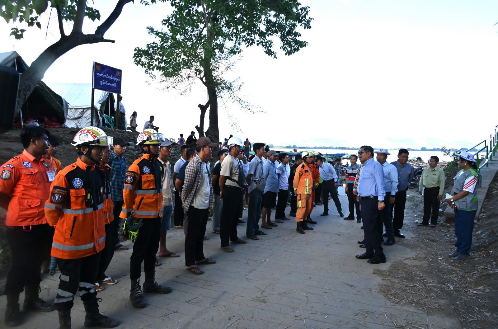 ထို့နောက် အနောက်လယ်ကုန်းရပ်ကွက်နှင့် ကြက်ပေါင်ခြံရပ်ကွက်အကြား မနောဥပိန် တံတားနေရာ၌ ရပ်ကွက်များအတွင်းရှိ ပြည်သူများအား ရေယာဉ်များဖြင့် ရှာဖွေကယ်ဆယ်ရေးနှင့် ရွေ့ပြောင်းသယ်ယူခြင်းများ ဆောင်ရွက်ပေးလျက်ရှိသည့် အခြေအနေများကို ကြည့်ရှုအားပေးခဲ့ကြ ပြီး ရွေ့ပြောင်းလာသည့် ပြည်သူများအား အားပေးစကားများ ပြောကြားခဲ့ကြကာ သက်ကြီးဘိုးဘွား များနှင့် မသန်စွမ်းလူနာများအား အမြန်ဆုံး ရှာဖွေကယ်ဆယ်ပေးကြရေးနှင့် လိုအပ်လာပါက အရေး ပေါ် ဆေးရုံ၊ ဆေးခန်းများသို့ ပို့ဆောင်ပေးနိုင်ရေး စီစဉ်ဆောင်ရွက်ပေးခဲ့သည်။ ထို့နောက် ကျွန်းပင် သာစက်လှေဆိပ် စုရပ်နေရာသို့ သွားရောက်ပြီး ကယ်ဆယ်ရေးအဖွဲ့များ စုဖွဲ့ဆောင်ရွက်လျက်ရှိ သည့် အခြေအနေများနှင့် မြစ်ရေမြင့်တက်လျက်ရှိသည့် အခြေအနေများကို ကြည့်ရှုစစ်ဆေးခဲ့ကြ ကာ ရပ်ကွက်နေပြည်သူများအား စိုးရိမ်မှုမရှိစေရေးနှင့် ကယ်ဆယ်ရေးတပ်ဖွဲ့များနှင့် ပူးပေါင်းဆောင် ရွက်ကြရေး တိုက်တွန်းမှာကြားခဲ့သည်။