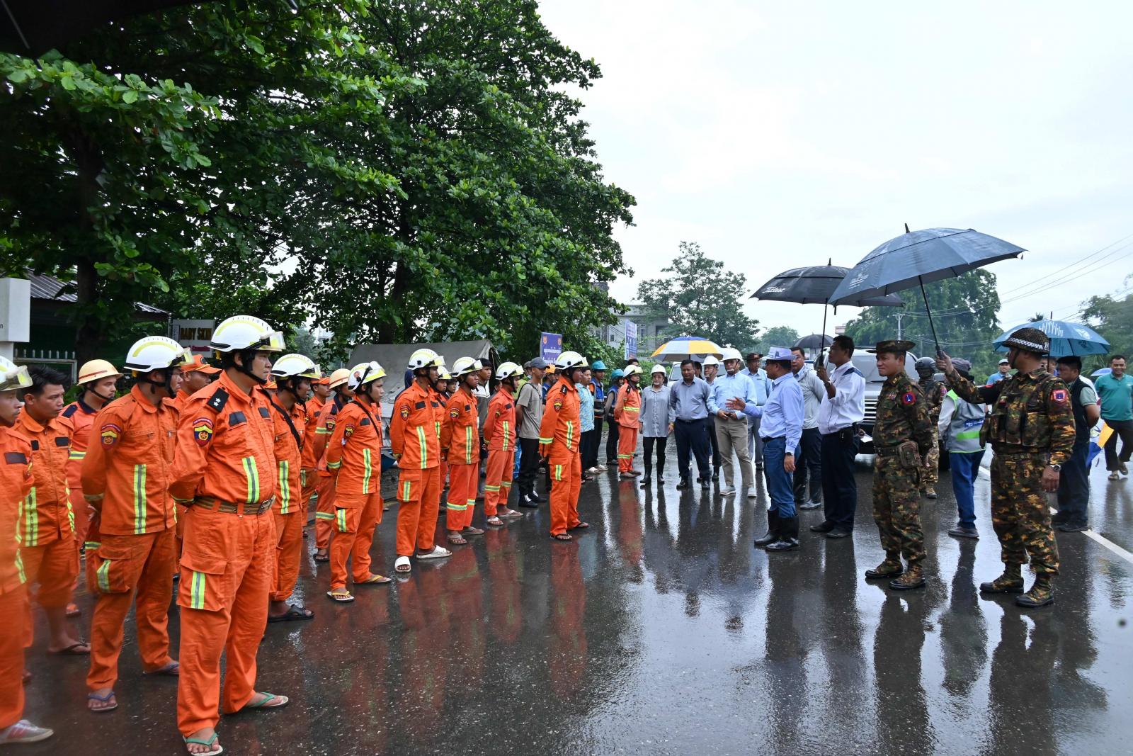 ထို့အပြင် ပြည်နယ်အစိုးရအဖွဲ့၏စီမံမှုဖြင့် ယနေ့မွန်းလွဲပိုင်းအထိ ရေဘေးသင့်ပြည်သူများ အား ကြက်ပေါင်ခြံ ရပ်ကွက်အတွင်း ရွှေဆုပန်ဘုန်းတော်ကြီးကျောင်းနှင့် အ.မ.က(မူလွန်)ကျောင်း တို့၌ လည်းကောင်း၊ လယ်ကုန်းရပ်ကွက်အတွင်း အမှတ်(၁) မူလွန်ကျောင်း၌ လည်းကောင်း၊ အမှတ် (၁၂) အခြေခံပညာအထက်တန်းကျောင်း(ဇီးလွန်)၌လည်းကောင်း၊ ရမ်ပူရပ်ကွက်အတွင်းမာမက ဘုန်းတော်ကြီးကျောင်း၊ အမှတ်(၁) အခြေခံပညာအထက်တန်းကျောင်းခွဲ၊ အောင်သဒ္ဒိဘုန်းတော်ကြီးကျောင်းနှင့် ရွှေဘိုကျောင်းတို့တို့တွင်လည်းကောင်း၊ မြို့သစ်ကြီးရပ်ကွက်အတွင်း အောင်ဇေရန် အောင်ဘုန်းကြီးကျောင်း၌လည်းကောင်း၊ မြေမြင့်ရပ်ကွက်၊ မြေမြင့်ဘုန်း တော်ကြီးကျောင်း၌ လည်းကောင်း ကယ်ဆယ်ရေးစခန်း (၁၀)ခုဖွင့်လှစ်၍ အိမ်ထောင်စု (၈၁၀)စု၊ လူဦးရေ ၄၀၂၀ တို့အား ကူညီကယ်ဆယ်ထားရှိသည့်အပြင် အိမ်ထောင်စုများ နေထိုင်စားသောက်မှု အဆင်ပြေစေရေး ဆန်၊ ဆီ၊ ကြက်ဥ၊ ခေါက်ဆွဲ ခြောက်ဘူး၊ ဆန်ပြုတ်ဘူးများနှင့် ရေသန့်ဘူးများကို ထောက်ပံ့ပေးလျက်ရှိ ကြောင်း သိရသည်။