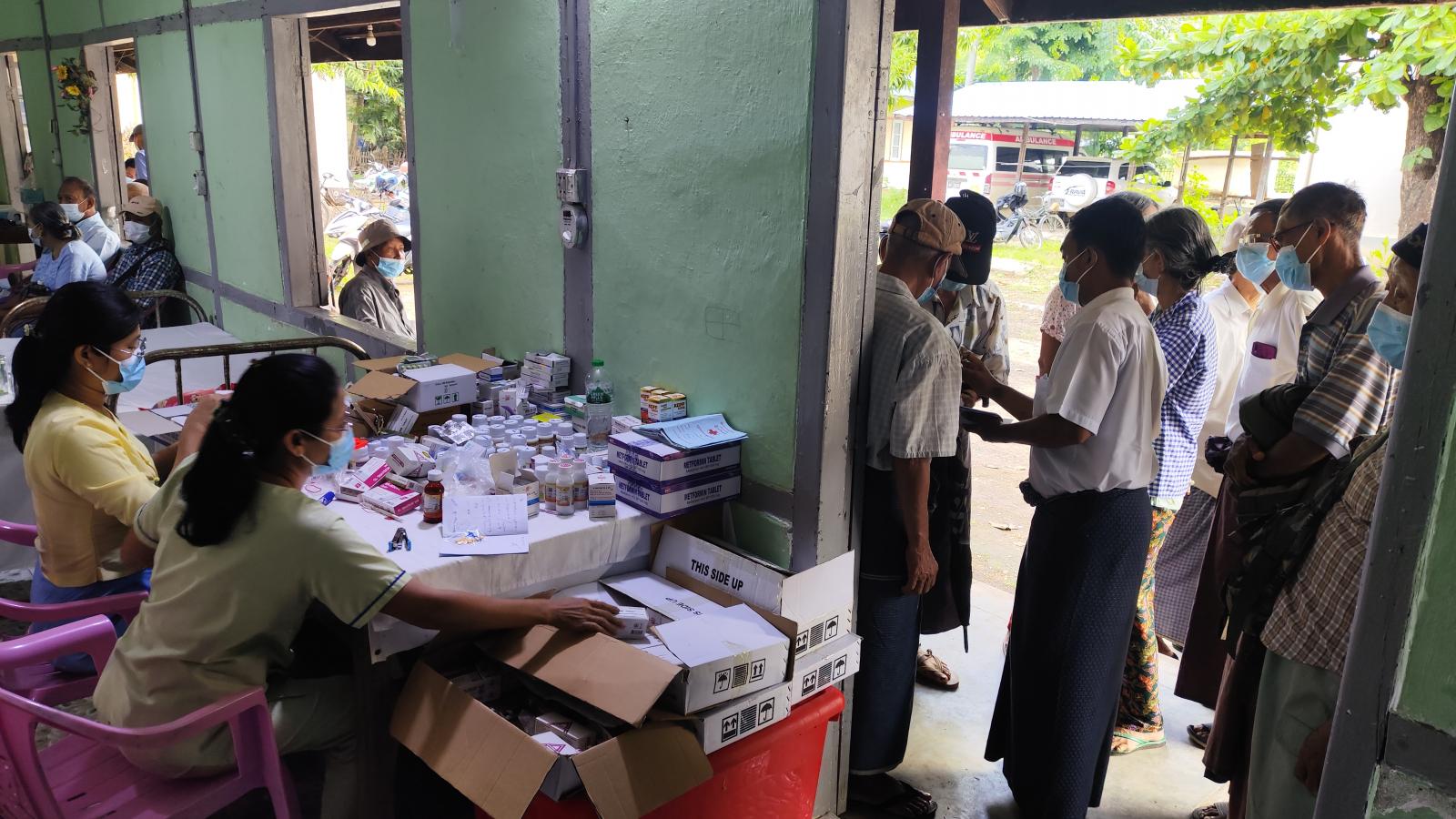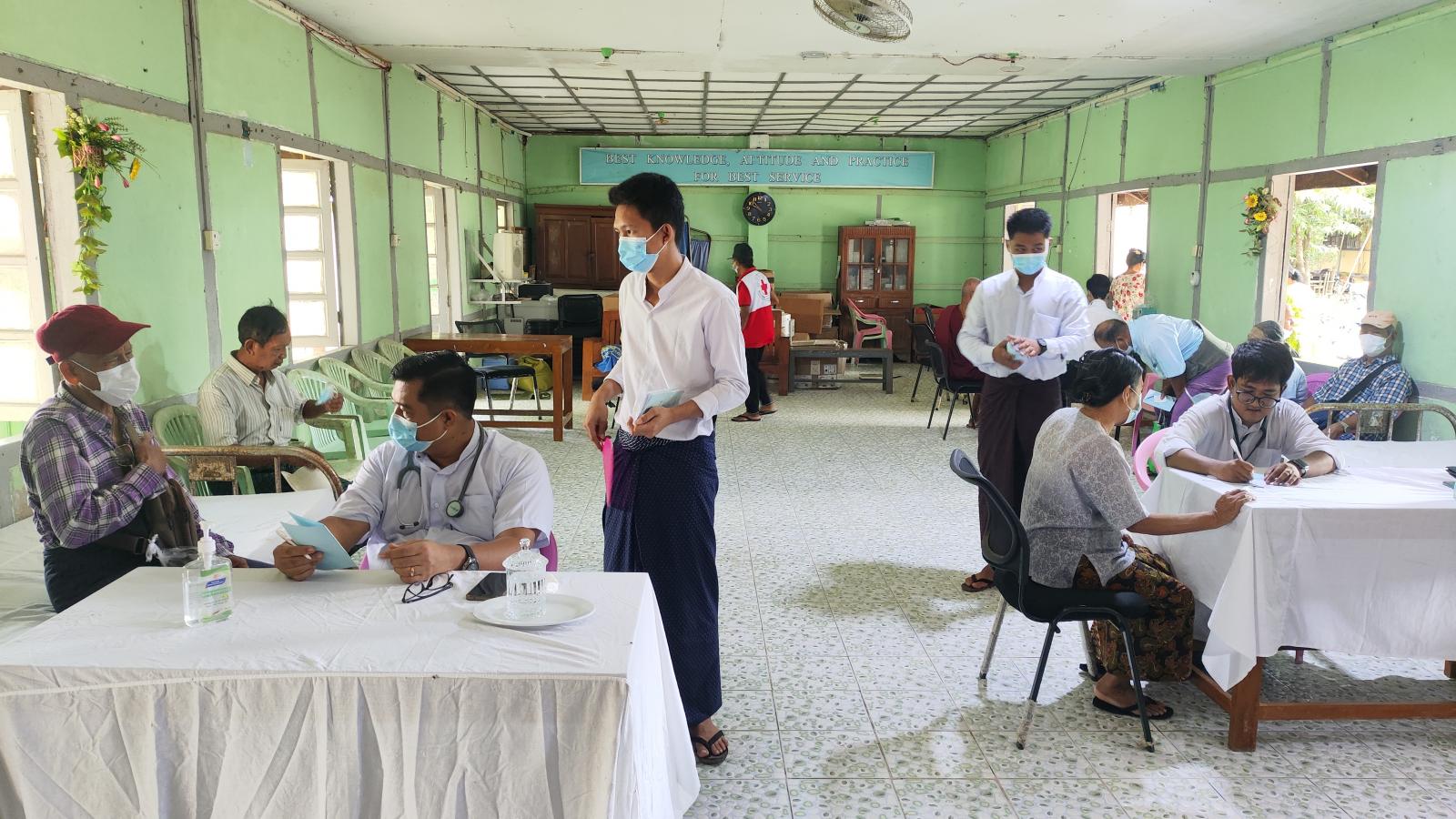 ထိုသို့ ဆေးကုသပေးရာတွင် မြို့နယ်ပြည်သူ့ကျန်းမာရေးဦးစီးဌာနမှူး ဒေါက်တာသန်းထိုက်စိုးဦးဆောင်၍ ဆရာ၊ ဆရာမများက အငြိမ်းစားဝန်ထမ်းများကို အပူချိန်များတိုင်းတာ၍လည်းကောင်း၊ ဆီးချို၊ သွေးချို၊ နှလုံးရောဂါ၊ လေးဘက်နာရောဂါ၊ အစာအိမ်ရောဂါ၊ သွေးတိုးရောဂါ အစရှိသောရောဂါများကို အခမဲ့စမ်းသပ်စစ်ဆေးကုသပေးခြင်းနှင့် ဆေးဝါးများ အခမဲ့ပေးလျက်ကြောင်း မြို့နယ်ဆရာဝန်ကြီးဒေါက်တာသန်းထိုက်စိုးထံမှ သိရသည်။