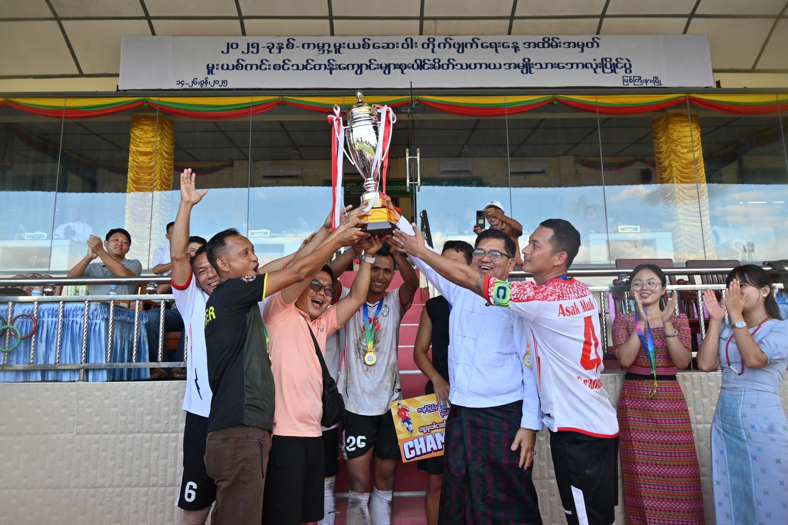 ၂၀၂၅ ခုနှစ်၊ ဇွန် ၂၆ ရက်နေ့တွင် ကျရောက်သည့် အပြည်ပြည်ဆိုင်ရာ မူးယစ်ဆေးဝါးအလွဲသုံးမှုနှင့် တရားမဝင်ရောင်းဝယ်မှုတိုက်ဖျက်ရေးနေ့ အထိမ်းအမှတ်အဖြစ် ဇွန်လ ၁၄ ရက်နေ့က စတင်ကျင်းပပြုလုပ်ခဲ့သော ကချင်ပြည်နယ် မူးယစ်ကင်းစင်သင်တန်းကျောင်းများ၏ စုပေါင်းမိတ်သဟာယအဖွဲ့တို့က ပူးပေါင်းကျင်းပသော အမျိုးသားဘောလုံးပြိုင်ပွဲ နောက်ဆုံးဗိုလ်လုပွဲနှင့် ဆုချီးမြှင့်ပွဲ အခမ်းအနားကို ယမန်နေ့ညနေ ၃ နာရီက ပြည်နယ်ဘောလုံးကွင်းအတွင်း၌ ကျင်းပပြုလုပ်ခဲ့ကြောင်း သိရသည်။