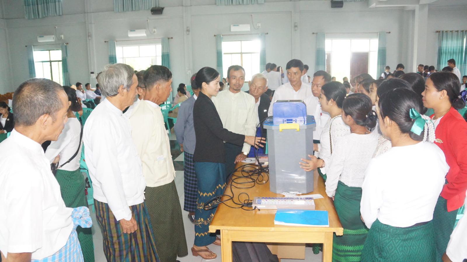 ကချင်ပြည်နယ်၊ ပူတာအိုမြို့နယ် ရွေးကောက်ပွဲကော်မရှင်အဖွဲ့ခွဲက ကြီးမှူးဖွင့်လှစ်သော မြန်မာအီလက်ထရောနစ်မဲပေးစက် ကိုင်တွယ်အသုံးပြုနည်းသင်တန်းသား/သူများ လက်တွေ့မဲပေးခြင်းများ သရုပ်ပြသခြင်းကို ယနေ့နံနက်(၁၀)နာရီက ပူတာအိုမြို့ ဖုန်ကန်ရာဇီခန်းမ၌ ကျင်းပသည်။