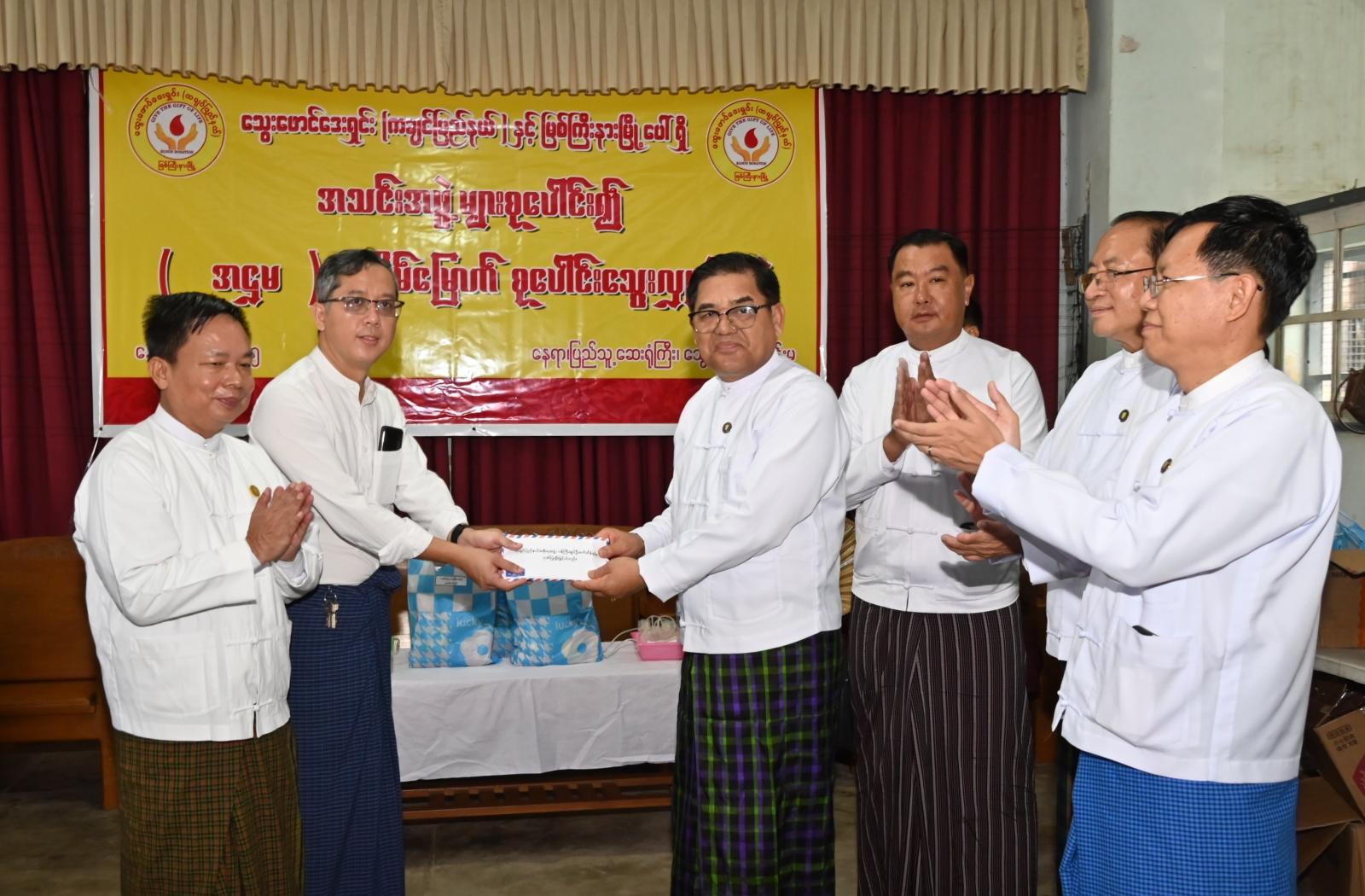 ယင်းနောက် ပြည်နယ်ဝန်ကြီးချုပ်က စုပေါင်းသွေးလှူဒါန်းပွဲအတွက် ဦးဆောင်၍ ဆောင်ရွက် ခဲ့ကြသော သွေးဖောင်ဒေးရှင်း(ကချင်ပြည်နယ်)နှင့် မြစ်ကြီးနားပြည်သူ့ဆေးရုံကြီး ကျန်းမာရေး ဝန်ထမ်းများအတွက် ချီးမြှင့်ထောက်ပံ့ငွေများကို ထောက်ပံ့ပေးအပ်ခဲ့သည်။
