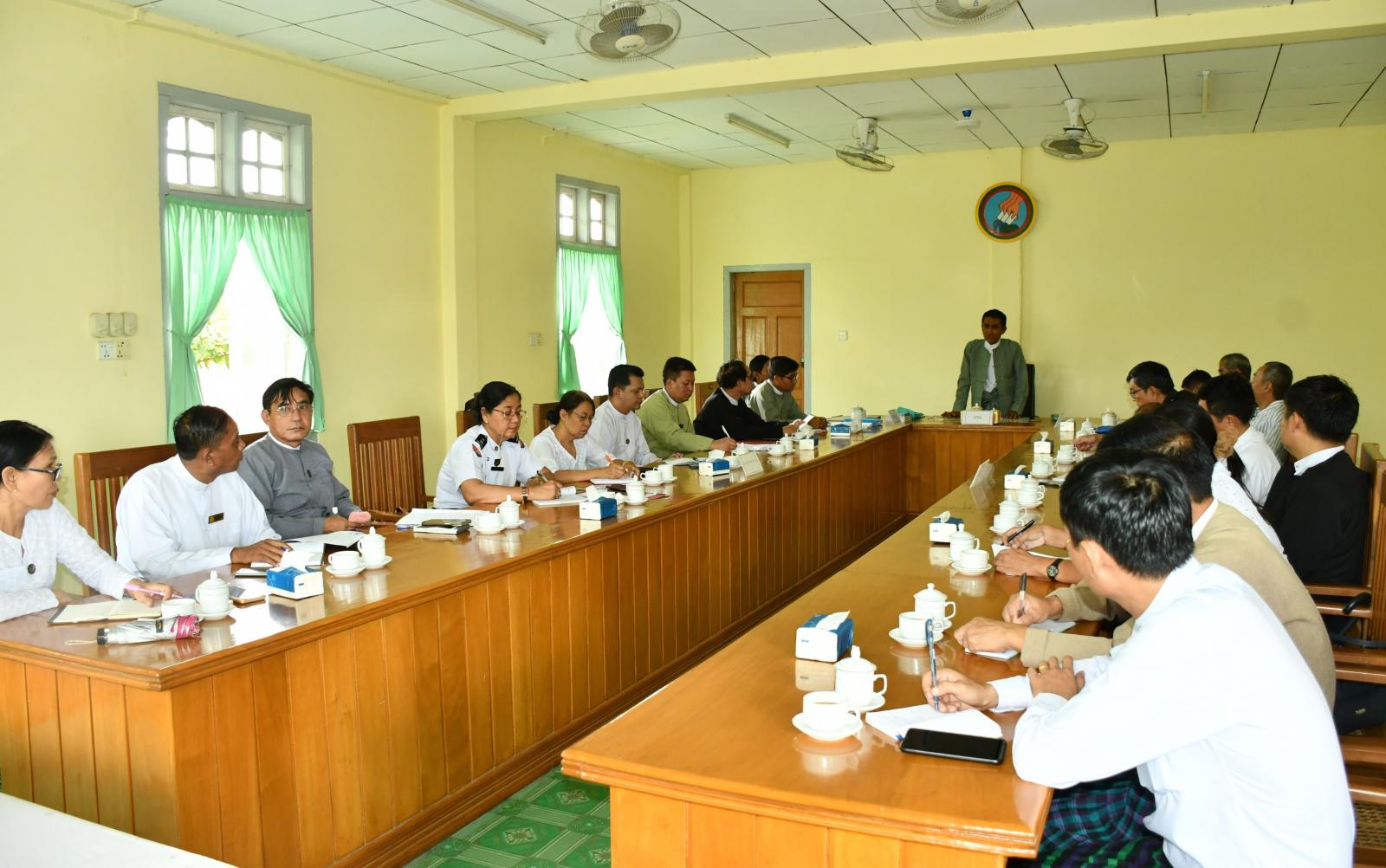 အဆိုပါလုပ်ငန်းညှိနှိုင်းအစည်းအဝေးတွင် ပြည်နယ်ရွေးကောက်ပွဲကော်မရှင်အဖွဲ့ခွဲဥက္ကဋ္ဌ ဦးကျော်အေးနှင့်အဖွဲ့ဝင်များ၊ ခရိုင်ရွေးကောက်ပွဲကော်မရှင်အဖွဲ့ခွဲဥက္ကဋ္ဌ ဦးကျော်အေးက ရွေး ကောက်ပွဲဆိုင်ရာလုပ်ငန်းများနှင့်စပ်လျဉ်း၍ ရှင်းလင်းပြောကြားပြီး ပြည်နယ်ရွေးကောက်ပွဲကော်မရှင်အဖွဲ့ခွဲအတွင်းရေးမှူး ဦးမျိုးမင်းဦးက လုပ်ငန်းဆောင်ရွက်မည့် အစီအစဉ်များကို ရှင်းလင်း တင်ပြသည်။