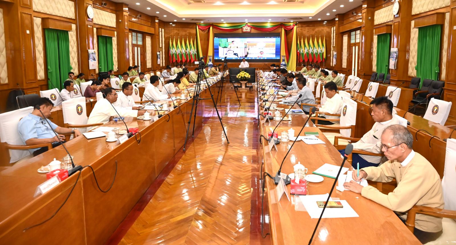 ထို့နောက် ပြည်နယ်စီးပွားရေးရာဝန်ကြီးဦးမျိုးဆွေက နိုင်ငံ့စီးပွားမြှင့်တင်ရေး ရန်ပုံငွေမတည် ငွေခွဲဝေချထားပေးမှုများကို ရှင်းလင်းတင်ပြပြီး တက်ရောက်လာကြသည့် ကော်မတီအဖွဲ့ဝင် ပြည် နယ်အဆင့်ဌာနဆိုင်ရာများ၊ ခရိုင်စီမံခန့်ခွဲရေးနှင့် အုပ်ချုပ်ရေးအဖွဲ့ဥက္ကဋ္ဌများက သက်ဆိုင်ရာခရိုင်/ မြို့နယ်များအလိုက် စိုက်ပျိုးမွေးမြူရေးနှင့် သမဝါယမလုပ်ငန်းများအတွက် ရန်ပုံငွေများ ထုတ်ချေး ပေးထားမှုများနှင့် ကဏ္ဍအလိုက် အတိုး/ အရင်းကောက်ခံရရှိမှု အခြေအနေများကို အသီးသီးတင်ပြ ဆွေးနွေးကြရာ ပြည်နယ်ဝန်ကြီးချုပ်က ပြည်သူများ အကျိုးစီးပွားဖြစ်ထွန်းမြန်စေရေး ရန်ပုံငွေများကို စနစ်တကျစီမံခန့်ခွဲကြရေးနှင့် လိုအပ်သည်များကို ညှိနှိုင်းပေါင်းစပ်ဆောင်ရွက်ပေးခဲ့ကြသည်။