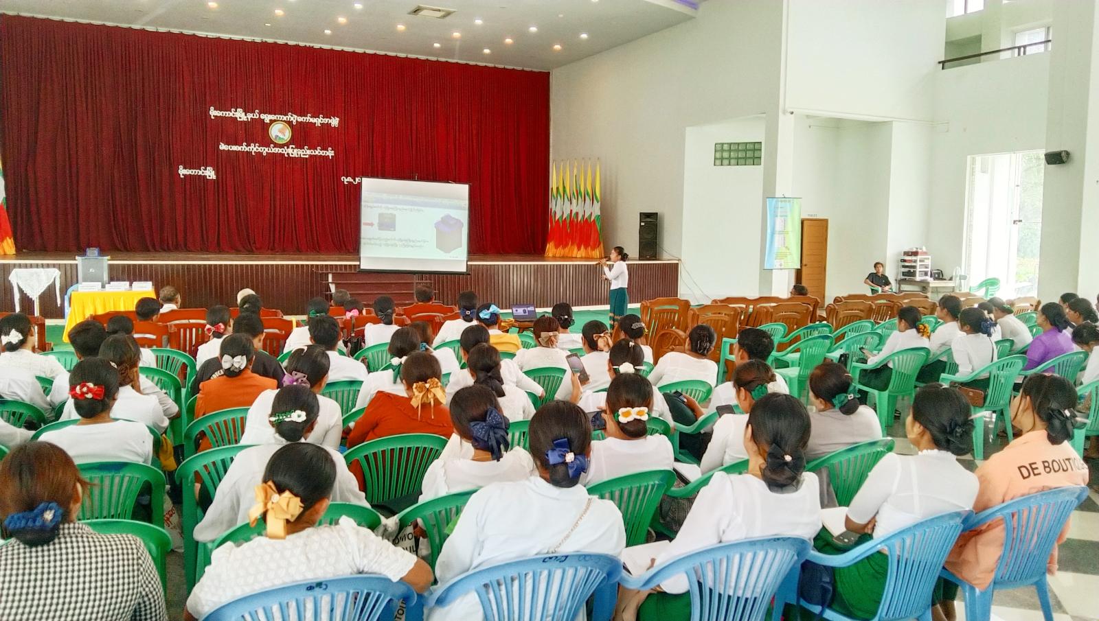 သင်တန်းတွင် မြို့နယ်စီမံခန့်ခွဲရေးနှင့် အုပ်ချုပ်ရေးကော်မတီဥက္ကဋ္ဌ ဦးသီဟဇော်၊ မြို့နယ်ရွေးကောက်ပွဲကော်မရှင်အဖွဲ့ခွဲဥက္ကဋ္ဌနှင့်အဖွဲ့ဝင်များ တက်ရောက်ပြီး မြို့နယ်စီမံခန့်ခွဲရေးဥက္ကဋ္ဌက သင်တန်းနှင့်ပတ်သက်၍ အားပေးစကားပြောကြားကာ မြို့နယ်ရွေးကောက်ပွဲကော်မရှင်အဖွဲ့ခွဲမှ ဦးစီးအရာရှိ ဒေါ်သူဇာဝင်းက အီလက်ထရောနစ်မဲပေးစက်အကြောင်းကို power point ဖြင့် ရှင်းလင်း တင်ပြခဲ့သည်။