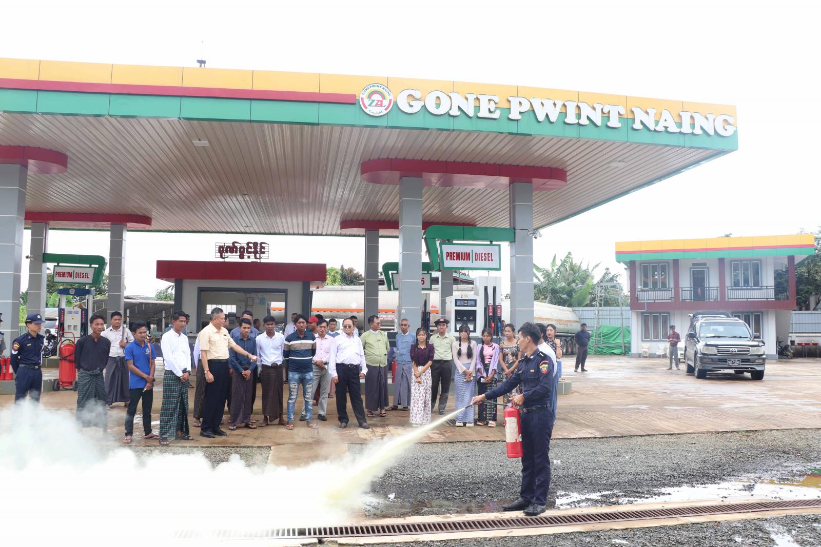 ဆက်လက်၍ ဂုဏ်ပွင့်နိုင်စက်သုံးဆီဆိုင်၌ မြို့နယ်မီးသတ်ဦးစီးဌာနက မီးဘေးန္တရာယ်ကြိုတင်ကာကွယ်ရေးအတွက် မီးသတ်ဆေးဘူးအသုံးပြု၍ မီးငြိမ်းသတ်နည်းအား လက်တွေ့သရုပ်ပြသမှုကို ကြည့်ရှုအားပေးခဲ့ကြပြီး အဆိုပါ ဆီဆိုင်နှင့် ကျားပြောင်းစက်သုံးဆိုင်အား သတ်မှတ်ချက်များနှင့် ညီညွတ်မှုရှိ/မရှိ ကြည့်ရှုစစ်ဆေးခဲ့ကြကြောင်း သိရသည်။