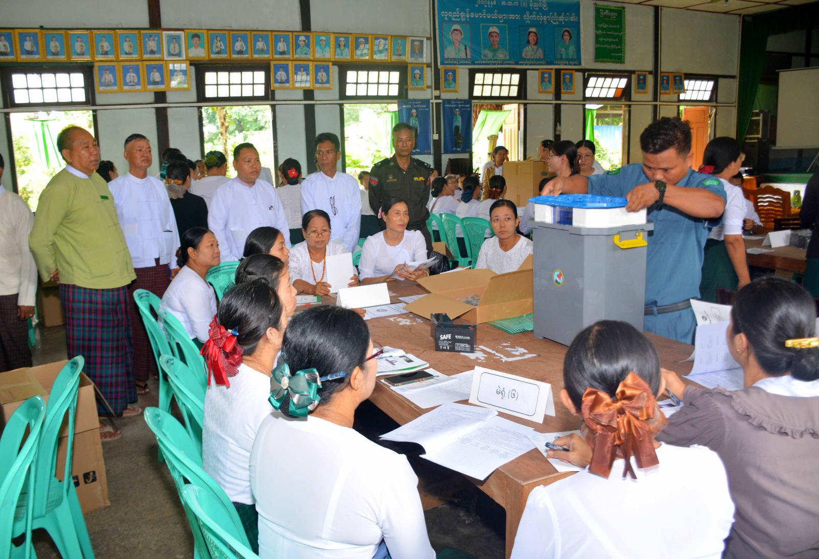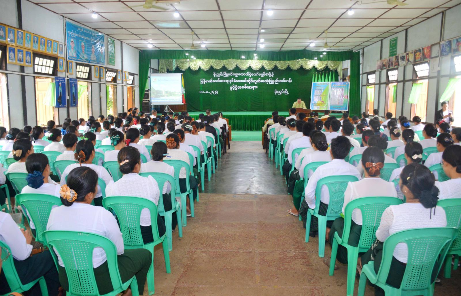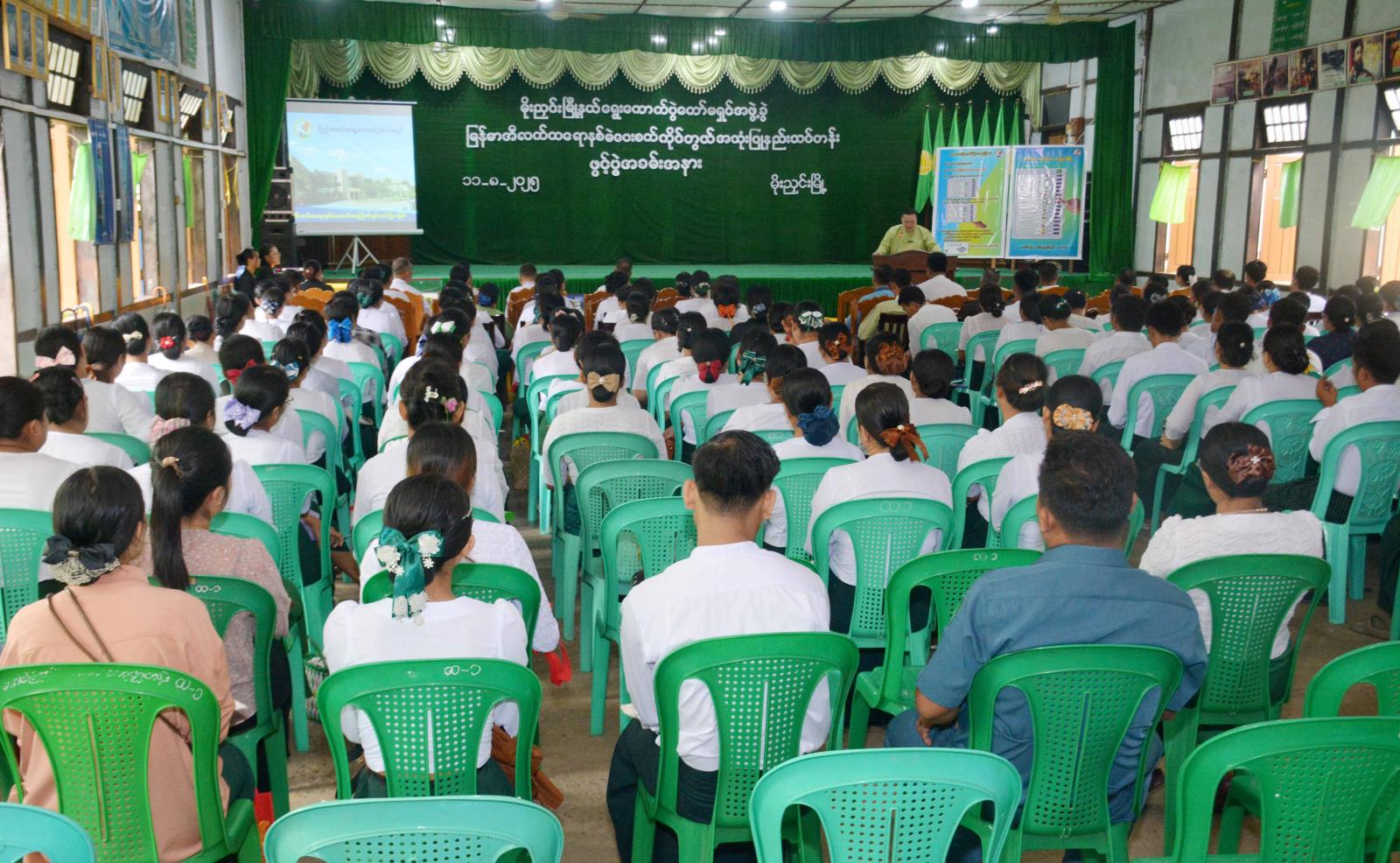 ကချင်ပြည်နယ် မိုးညှင်းခရိုင် မိုးညှင်းမြို့တွင် ပါတီစုံဒီမိုကရေစီအထွေထွေရွေးကောက်ပွဲ အောင်မြင်စွာကျင်းပနိုင်ရေးအတွက် သင်တန်းတက်ရောက်လာကြသည့် သင်တန်းသား သင်တန်းသူများအား မြန်မာအီလက်ထရောနစ်မဲပေးစက်(MEVM) ကိုင်တွယ်အသုံးပြုနည်း သင်တန်းဖွင့်ပွဲကို ယနေ့နံနက် (၉) နာရီက အမှတ်(၁) အခြေခံပညာအထက်တန်းကျောင်း အောင်ဆန်းခန်းမ၌ ကျင်းပသည်။