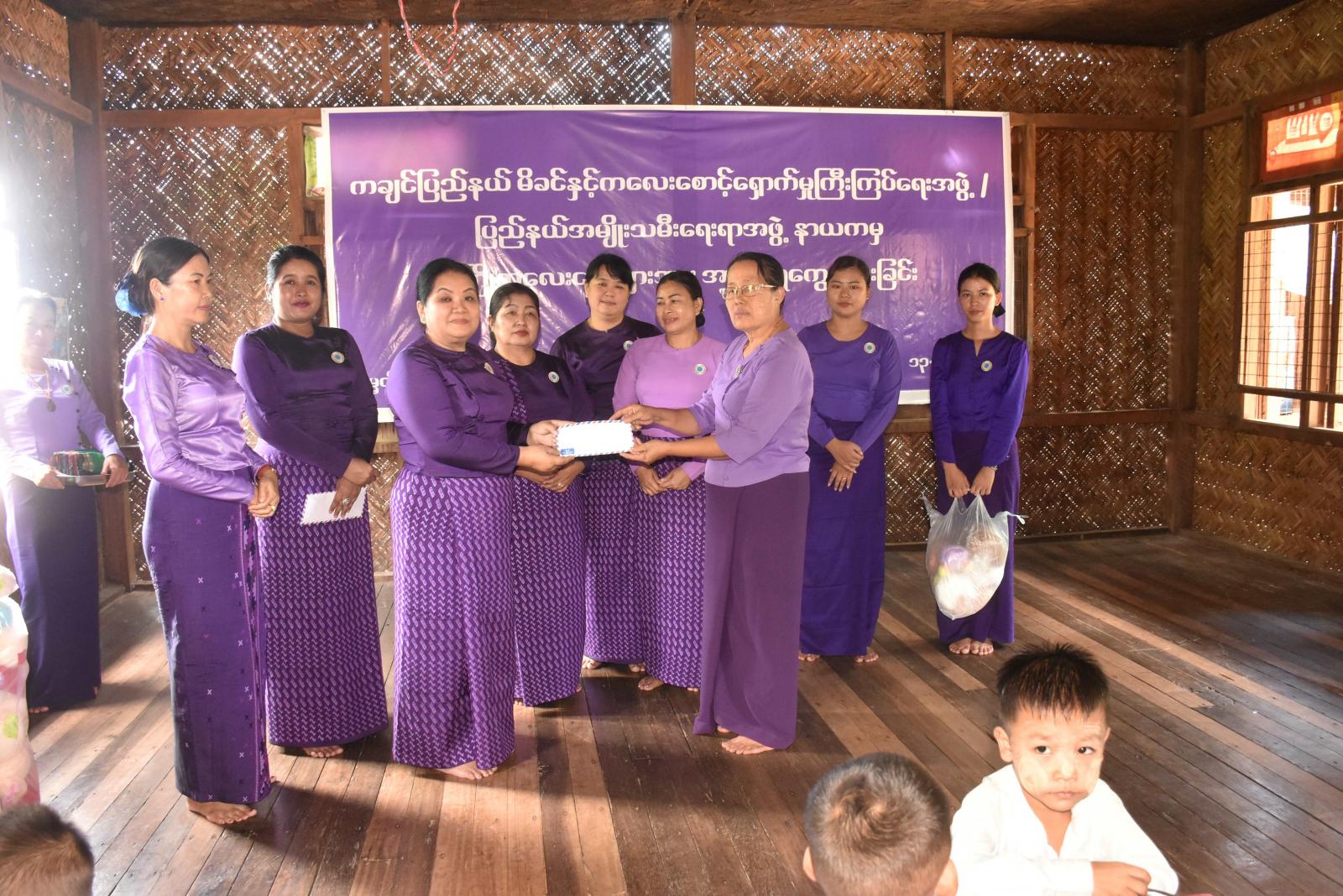 ကချင်ပြည်နယ်အမျိုးသမီးရေးရာနှင့် မိခင်နှင့်ကလေးစောင့်ရှောက်မှုကြီးကြပ်ရေးအဖွဲ့ဝင်များက မိုးကောင်းမြို့နယ်၊ နမ္မတီးမြို့၌ တိုက်နယ်ဆေးရုံရှိ ကိုယ်ဝန်ဆောင်မိခင်များအား အာဟာရထောက်ပံ့ခြင်းနှင့် မေတ္တာရှင်နေ့ကလေးထိန်းကျောင်းရှိ ကလေးငယ်များအား အာဟာရများကျွေးမွေးခြင်းကို သြဂုတ် ၁၃ ရက်က ကွင်းဆင်းဆောင်ရွက်ကြသည်။