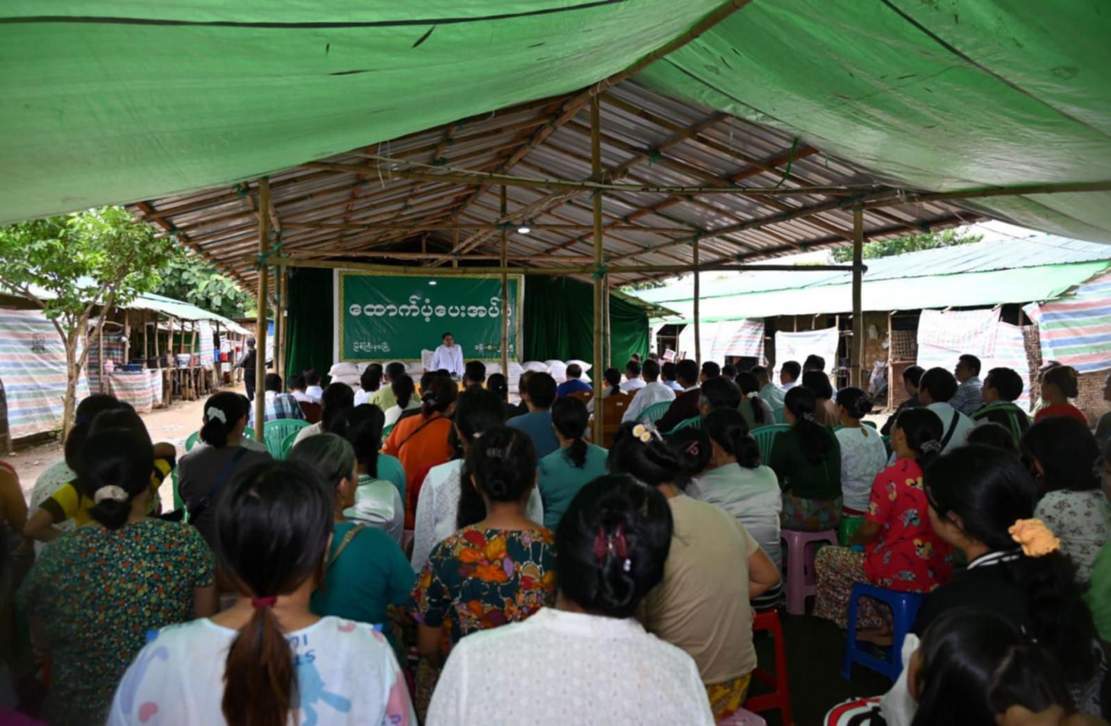 ထို့နောက် ပြည်နယ်ဝန်ကြီးချုပ်နှင့် ပြည်နယ်လူမှုရေးရာဝန်ကြီးတို့က ယာယီတိမ်းရှောင်စခန်းရှိ အိမ်ထောင်စု (၅၇) စုတို့အတွက် စုစုပေါင်းငွေကျပ် (၅၇၉၆၉၀၀) တန်ဖိုးရှိ အမျိုးသားသဘာဝဘေးအန္တရာယ်စီမံခန့်ခွဲမှုကော်မတီက ထောက်ပံ့သည့် ဆန် (၂၄) ပြည်ပါအိတ် (၅၇) အိတ်၊ ဆီ (၅၇) ပိဿာနှင့် ကြက်ဥများကို လည်းကောင်း၊ အလှူရှင်တစ်ဦးက ငွေကျပ် (၅၇)သိန်းကိုလည်းကောင်း အသီးသီးထောက်ပံ့ပေးအပ်ခဲ့ကြရာ စခန်းတာဝန်ခံက စခန်းနေမိသားစုများ အတွက် လိုအပ်ချက်များကို တင်ပြဆွေးနွေးသည်။