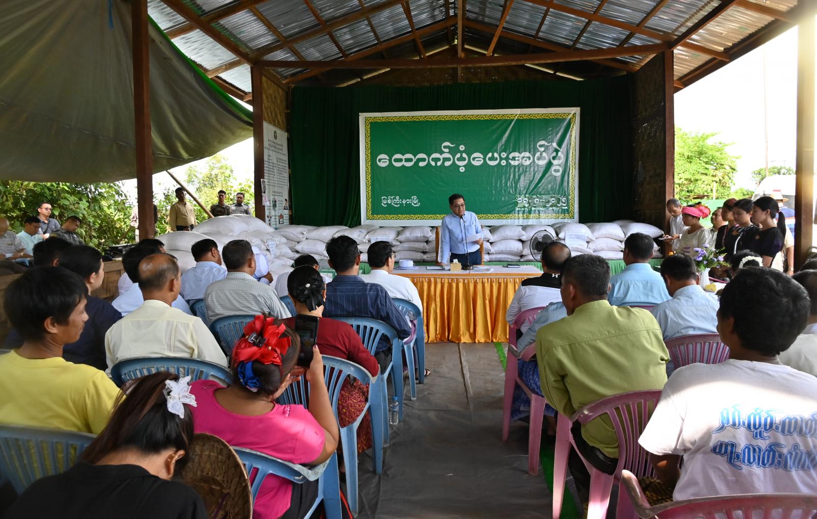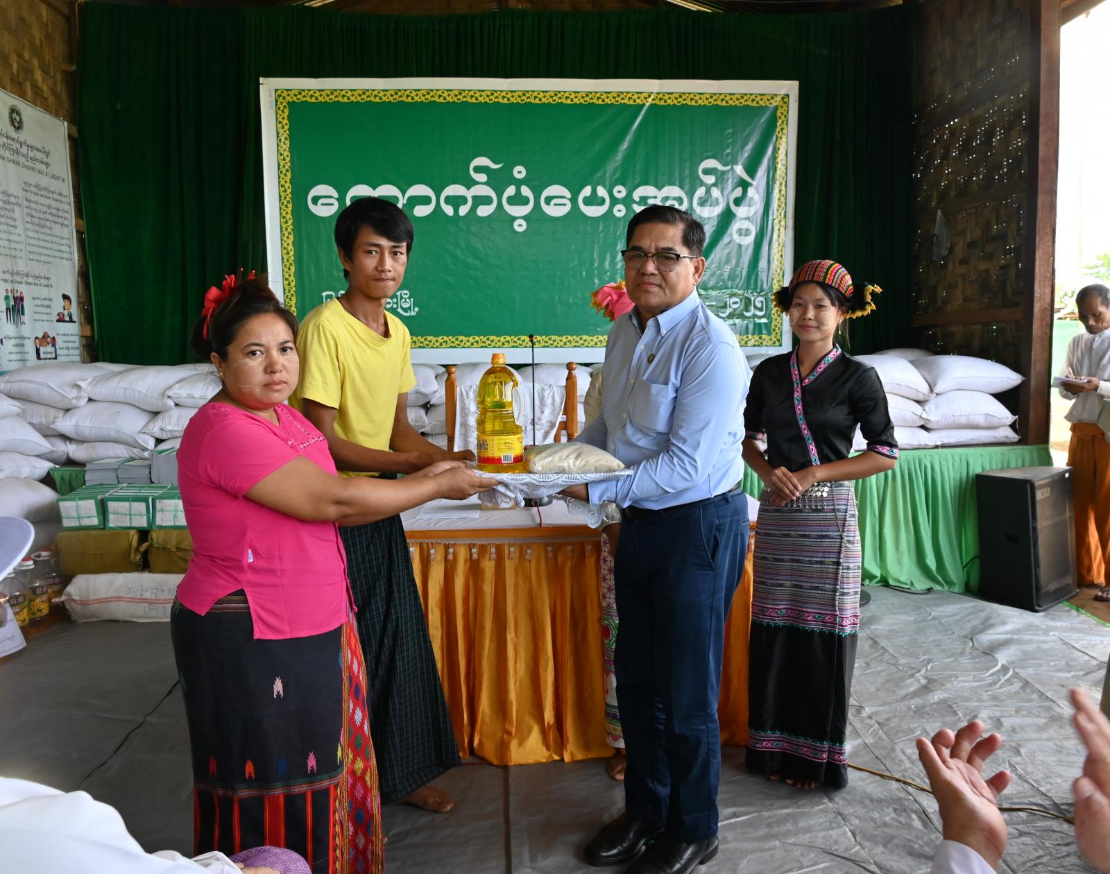 ထိုသို့ သွားရောက်ထောက်ပံ့ရာတွင် ပြည်နယ်ဝန်ကြီးချုပ်က မိမိတို့ ကချင်ပြည်နယ်အစိုးရအဖွဲ့အနေဖြင့် ပြည်နယ်အတွင်းရှိ လုံခြုံရေးအခြေအနေအရ နေရပ်စွန့်ခွာတိမ်းရှောင်လာသော ပြည်သူများအား အတတ်နိုင်ဆုံး အမိုးအကာဖြင့် လုံခြုံစွာနေထိုင်နိုင်ရေး၊ စားသောက်မှုအဆင်ပြေစေရေးနှင့် ကျောင်းသားကလေးငယ်များ ပညာစဉ်ဆက်မပြတ်သင်ယူနိုင်ရေး စီစဉ်ဆောင်ရွက်ပေး ခဲ့ပါကြောင်း၊ ယနေ့မိသားစုများအတွက် အခြေခံစားသောက်ကုန်များကို ထောက်ပံ့ပေးအပ်သွားမည်ဖြစ်သည့်အပြင် လိုအပ်သည်များကို ပွင့်ပွင့်လင်းလင်းတင်ပြကြစေလိုကြောင်း အားပေးပြော ကြားသည်။