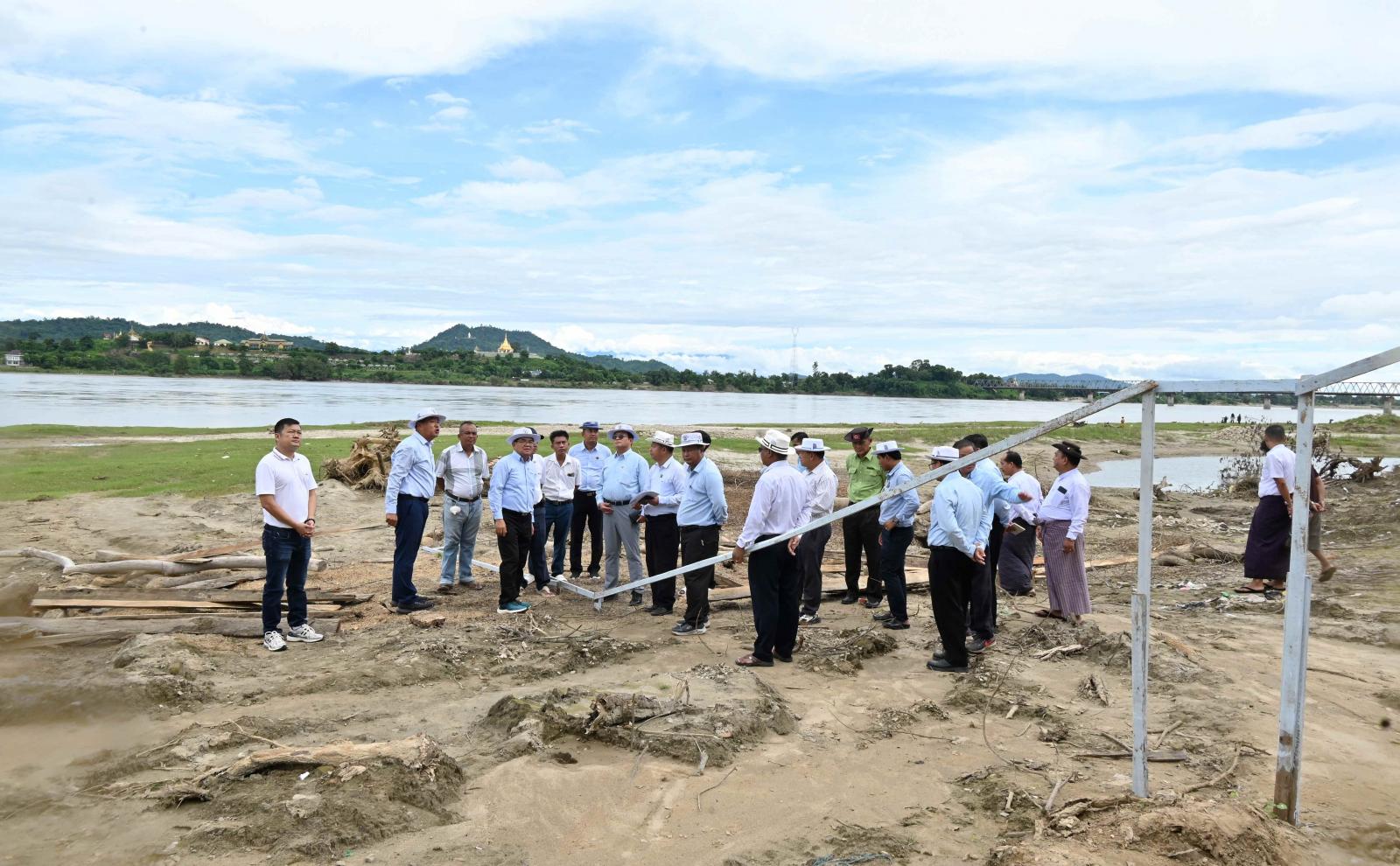 ကချင်ပြည်နယ်အစိုးရအဖွဲ့အနေဖြင့် မြစ်ကြီးနားမြို့အား နှစ်စဉ်မိုးရာသီရောက်တိုင်း ဧရာဝတီမြစ်ရေကြီးမြင့်မှုကြောင့် ပြည်သူများ စည်းစိမ်ဥစ္စာ နစ်နာဆုံးရှုံးမှုမရှိစေရေး၊ မြစ်ရေအမြင့်ဆုံးမြင့် တက်လာနိုင်မှုမှ ကာကွယ်နိုင်ရေး ယခုဘဏ္ဍာနှစ်စတင်၍ ရေလျှံတားမြေထိန်းနံရံလုပ်ငန်းများ၊ ရေထိန်းတံခါးများကို ဆောင်ရွက်လျက်ရှိရာ ပြည်နယ်ဝန်ကြီးချုပ် ဦးခက်ထိန်နန်သည် ယနေ့မွန်းလွဲ ၂ နာရီက တာဝန်ရှိသူများနှင့်အတူ ဗလမင်းထင်တံတားအထက်ပိုင်း၊ မန်ခိန်ရပ်ကွက်အတွင်း ရေလျှံ တားကျောက်စီမြေထိန်းနံရံနှင့် တမံတည်ဆောက်နေမှုများအား ကွင်းဆင်းစစ်ဆေးခဲ့သည်။