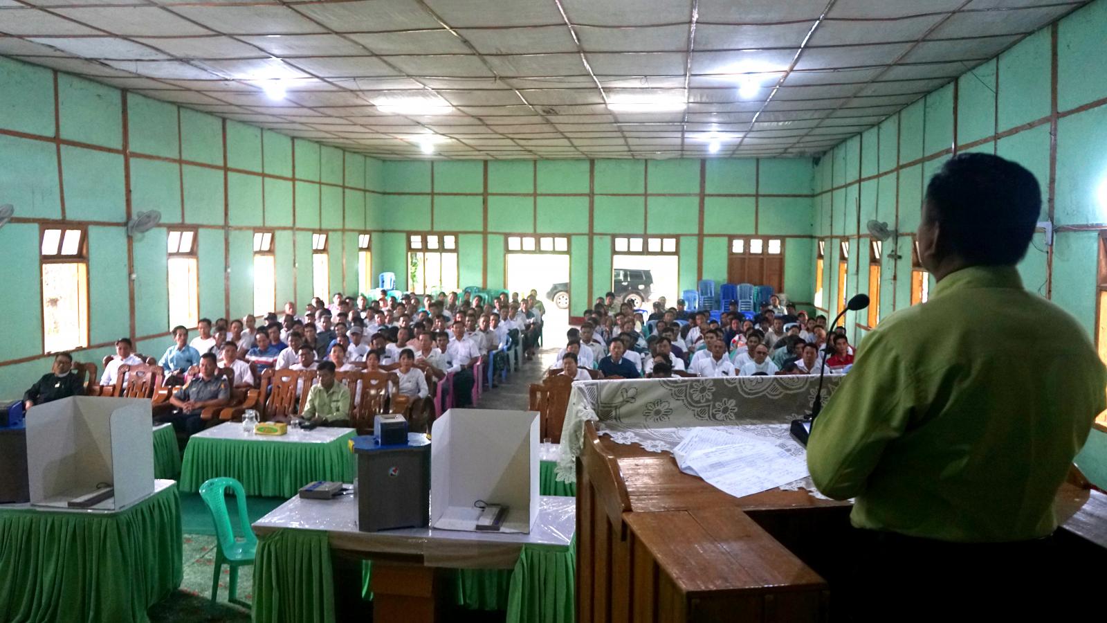ရှေ့ဦးစွာမြို့နယ်စီမံခန့်ခွဲရေးနှင့် အုပ်ချုပ်ရေးကော်မတီဥက္ကဋ္ဌ ဦးအောင်စိုးက အဖွင့်အမှာစကားပြောကြားခဲ့ပြီး မြို့နယ်ရွေးကောက်ပွဲကော်မရှင်အဖွဲ့ခွဲ အတွင်းရေးမှူး ဦးကျော်သက်ပိုင်က မဲဆန္ဒရှင်ပြည်သူများအား မြန်မာအီလက်ထရောနစ်မဲပေးစက်(MEVM)ဖြင့် သုံးစွဲပုံအဆင့်ဆင့်များ၊ မဲပေးစက်ဖွဲ့စည်းတည်ဆောက်ပုံ၊ မဲပေးချိန်နှင့် မဲရေတွက်အချိန်တို့တွင် ထိန်းချုပ်စက်ကိုင်တွယ်အသုံးပြုပုံအကြောင်းအရာများကို Power point ဖြင့် ရှင်းလင်းပြသခဲ့သည်။