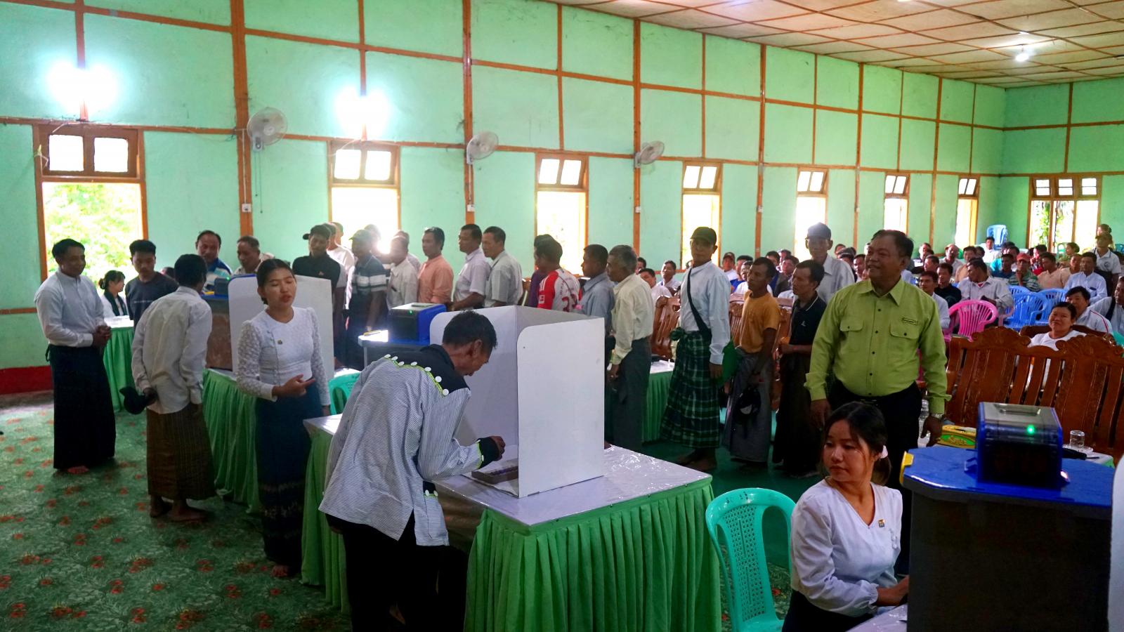 ထို့နောက် တက်ရောက်လာကြသည့် ရပ်ကွက်ကျေးရွာကော်မရှင်အဖွဲ့ဝင်များ၊ ရပ်ကွပ်အုပ်ချုပ်ရေးမှူးများ၊ ရပ်ကွက်များမှ မဲဆန္ဒရှင်ပြည်သူ(၅၄)ဦးတို့က မြန်မာ့အီလက်ထရောနစ်မဲပေးစက်(MEVM)ဖြင့် ပြည်သူ့လွတ်တော်၊ အမျိုးသားလွတ်တော်နှင့် ပြည်နယ်လွတ်တော်အတွက် ကိုယ်တိုင်လက်တွေ့စမ်းမဲပေးခဲ့ရာ မဲဆန္ဒရှင်ပြည်သူများက အားရကျေနပ်ဖွယ်ရှိကြောင်း သိရသည်။