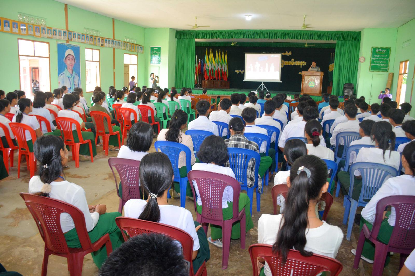 ကချင်ပြည်နယ် မိုးညှင်းခရိုင် မိုးညှင်းမြို့ အခြေခံပညာကျောင်းများမှ ကျောင်းသားကျောင်းသူ များ လူကုန်ကူးမှုအန္တရာယ် တားဆီးကာကွယ်ရေးအသိပညာပေး ဟောပြောပွဲကို ယမန်နေ့နံနက် (၉) နာရီခွဲက အမှတ် (၃) အခြေခံပညာအထက်တန်းကျောင်း အောင်ဆန်းခန်းမ၌ ကျင်းပသည်။