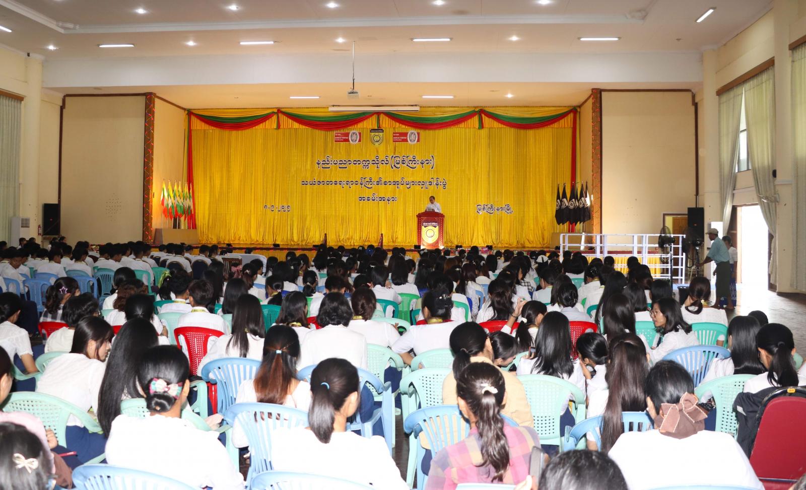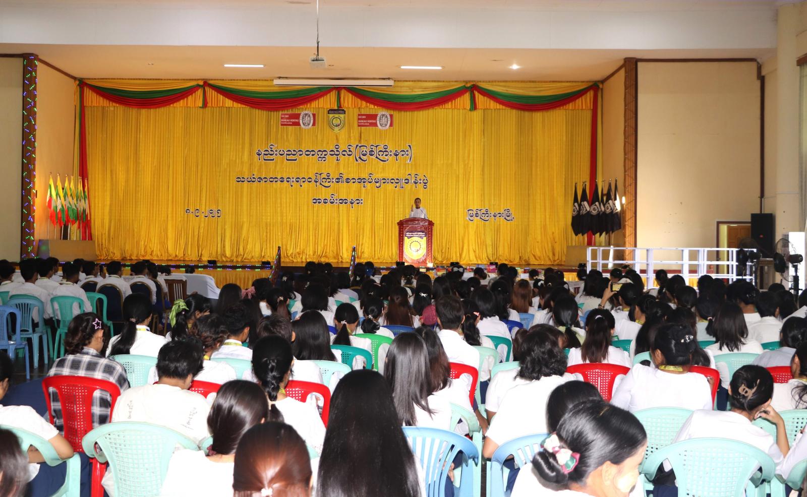 နည်းပညာတက္ကသိုလ် (မြစ်ကြီးနား)ရှိ တက္ကသိုလ်စာကြည့်တိုက်အတွက် စာအုပ်စာစောင်များ လှူဒါန်းပွဲနှင့် ကျောင်းသားလူငယ်များ ကျောင်းစာအပြင် စာပေဗဟုသုတပြည့်ဝစေရေးအတွက် စာပေဟောပြောပွဲကို ယမန်နေ့(၁၀)နာရီက တက္ကသိုလ်ဘွဲ့နှင်းသဘင်ခန်းမ၌ ကျင်းပပြုလုပ်သည်။