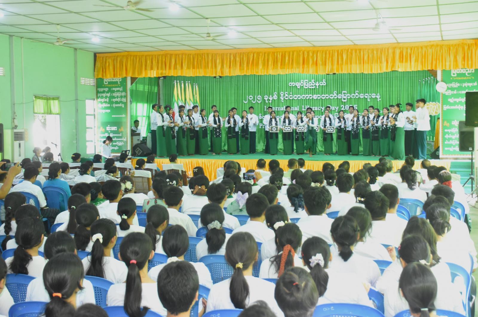 ထို့နောက် စာတတ်မြောက်ရေးလုပ်ငန်းများ ဆောင်ရွက်မှုဗီဒီယိုကလစ် ဖွင့်လှစ်ပြသမှုကို လည်းကောင်း အဆို၊ အက၊ အရေး၊ အတီး ပြိုင်ပွဲဝင် ကျောင်းသူမယဉ်မွန်ကျော်က တပင်တိုင်အကဖြင့် ကပြဖျော်ဖြေတင်ဆက်မှုကိုလည်းကောင်း ကြည့်ရှုအားပေးခဲ့ကြပြီး ပြည်နယ်ဝန်ကြီးချုပ်နှင့် ဇနီးဒေါ်နန်ဆိုင်းတို့က နိုင်ငံတကာစာတတ်မြောက်ရေးနေ့ အထိမ်းအမှတ် ထက်၊ လယ်၊ မူ အဆင့်စာစီစာကုံး၊ ကဗျာနှင့်ပန်းချီပြိုင်ပွဲများတွင် ဆုရရှိသည့် ကျောင်းသား/ ကျောင်းသူများအား ဂုဏ်ပြုမှတ်တမ်းလွှာနှင့် ဂုဏ်ပြုချီးမြှင့်ငွေများကို ချီးမြှင့်ပေးအပ်ခဲ့ကြသည်။