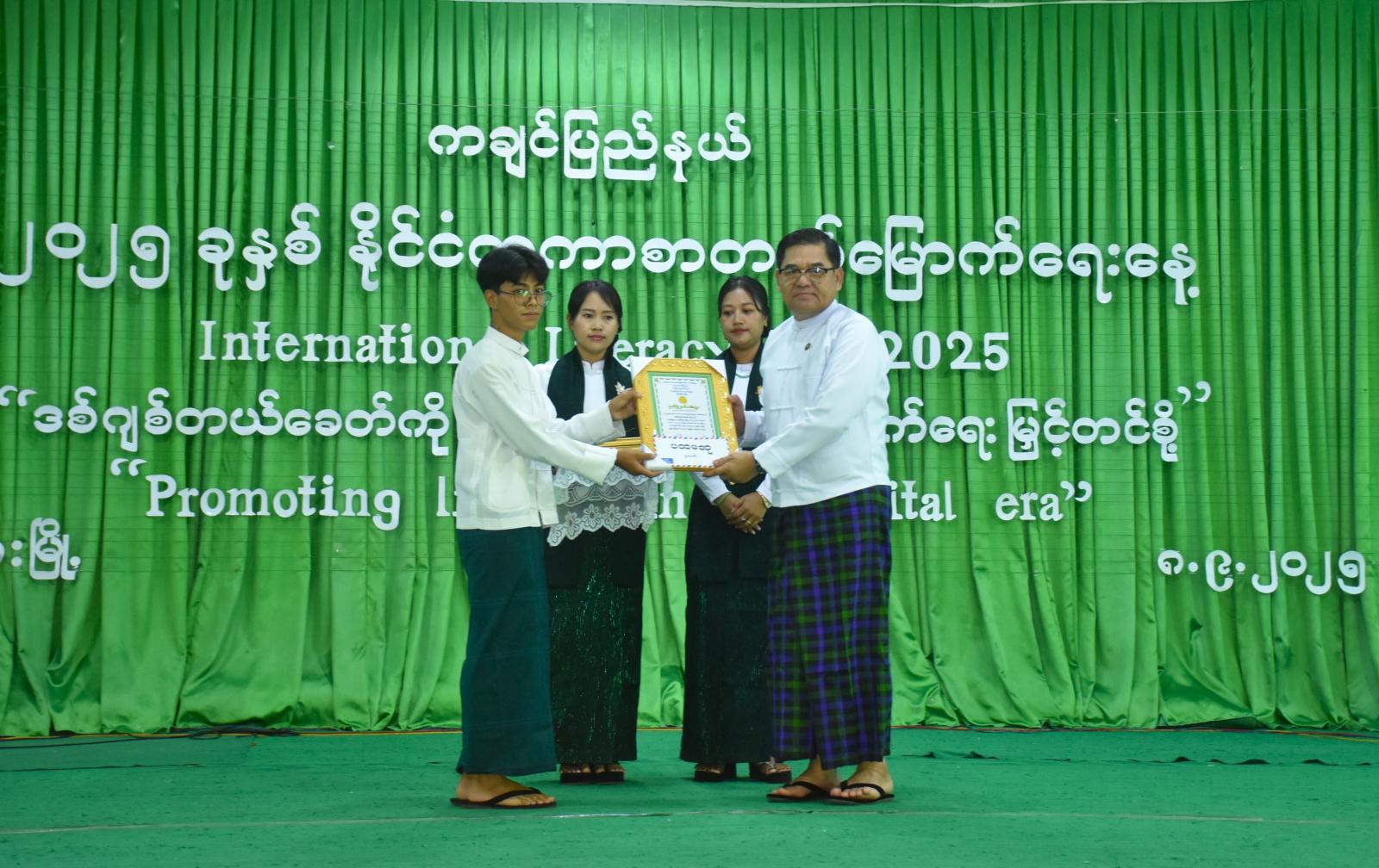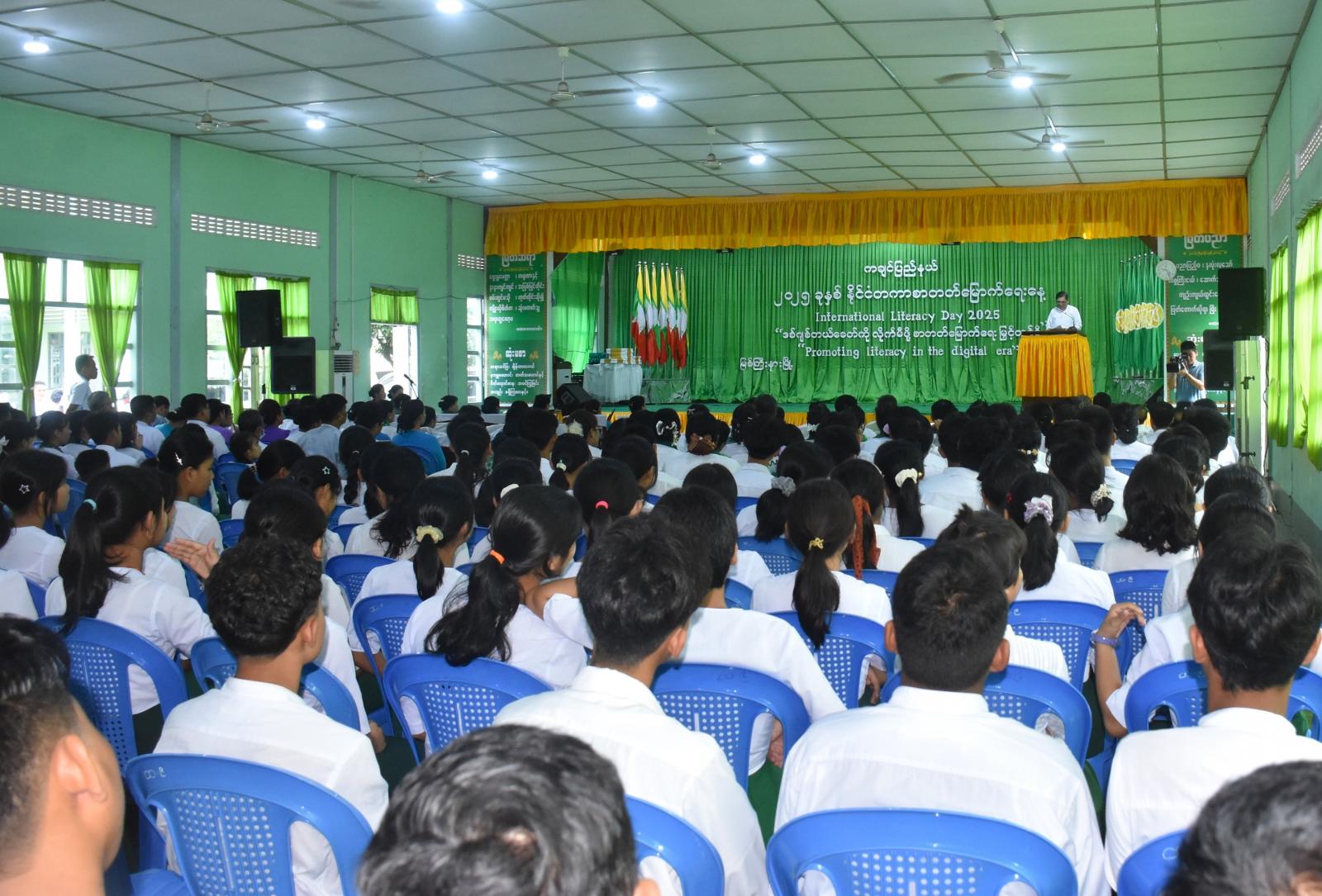နှစ်စဉ် စက်တင်ဘာ ၉ ရက်နေ့တွင် ကျရောက်သော နိုင်ငံတကာစာတတ်မြောက်ရေးနေ့ အခမ်းအနားကို ယခုနှစ်၂၀၂၅ ခုနှစ်တွင် “ဒစ်ဂျစ်တယ်ခေတ်ကို လိုက်မီဖို့ စာတတ်မြောက်ရေးမြှင်တင်စို့” ဆောင်ပုဒ်ဖြင့် ယနေ့နံနက်ပိုင်းက မြစ်ကြီးနားမြို့ အမှတ် (၉) အခြေခံပညာအထက်တန်းကျောင်း ရွှေသွေးခန်းမ၌ နိုင်ငံတကာစာတတ်မြောက်ရေးနေ့ အခမ်းအနားကို ကျင်းပပြုလုပ် ရာ အခမ်းအနားကို အခြေခံပညာကျောင်းသား/ ကျောင်းသူများက “ဝ ထ က လ သ” တေးချင်းဖြင့် ဂုဏ်ပြုသီဆိုဖျော်ဖြေဖွင့်လှစ်ပေးသည်။