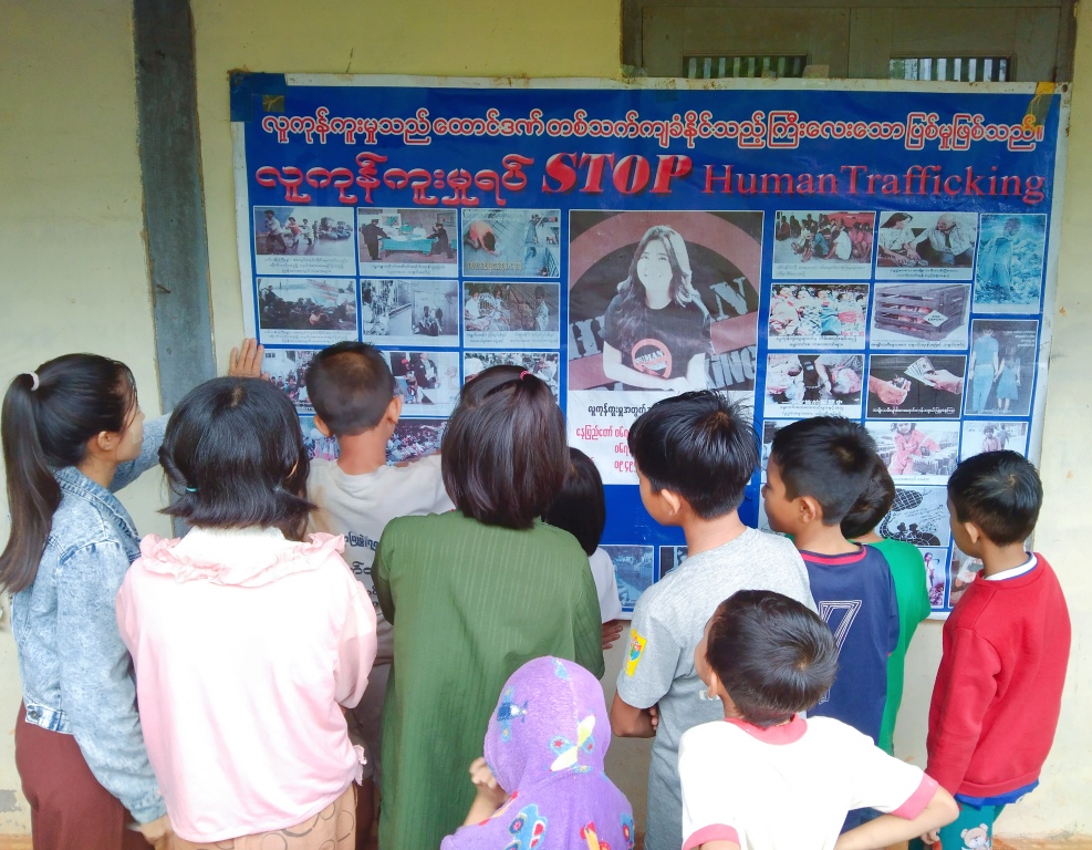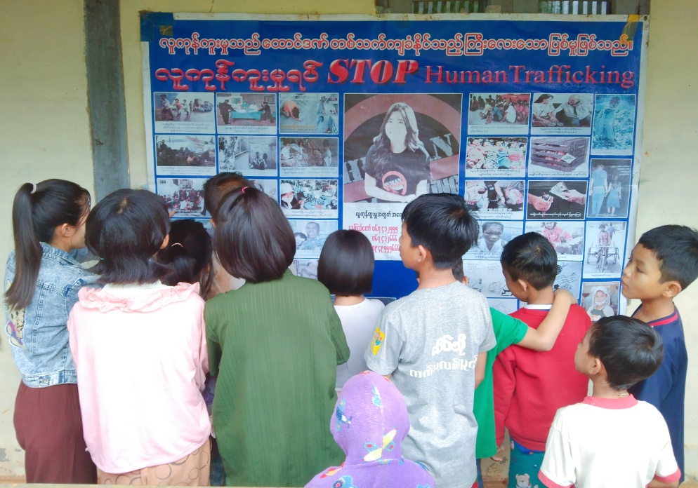 အဆိုပါ အသိပညာပေးနံရံကပ်စာစောင်တွင် လူကုန်ကူးသည်ဟုဆိုရာတွင် သိမ်းသွင်းစုဆောင်းခြင်း၊ ရွေ့လျားခြင်းနှင့် သယ်ယူပို့ဆောင်ခြင်း၊ ခေါင်းပုံဖြတ်ခြင်းတို့သည် လူကုန်ကူးမှု၏ အစိတ်အပိုင်းများပင်ဖြစ်ကြောင်း၊ လူကုန်ကူးမှုဖြစ်ပေါ်လာပုံနှင့် တွန်းအားပေး ချက်များ၊ ကမ္ဘာတစ်ဝှမ်း လူကုန်ကူးခံရမှုအခြေအနေ၊ မြန်မာနိုင်ငံ၏ လူကုန်ကူးမှုတားဆီးကာကွယ်ရေးဆိုင်ရာ နည်းဗျူဟာ (၄) ရပ်၊ လူကုန်ကူးခံရနိုင်သူများ၊ လူကုန်ကူးခံရသူကို အကူအညီပေးရမည့် လိုအပ်ချက်များ၊ လူကုန်ကူးမှုအန္တရာယ်တားဆီးကာကွယ်ရေး အသိပညာပေး ရုပ်ပြကာတွန်းများ စသည့်အကြောင်းအရာများကို ပြသထားရာ ဒေသနေပြည်သူများနှင့် ကျောင်းသား၊ ကျောင်းသူများက စိတ်ပါဝင်စားစွာ လေ့လာကြည့်ရှုခဲ့ကြပြီး သိရှိလိုသည်များအား မေးမြန်းခဲ့ရာ မြို့ဦးစီးမှူးက ပြန်လည်ဖြေကြားပေးခဲ့ကြောင်း သိရသည်။