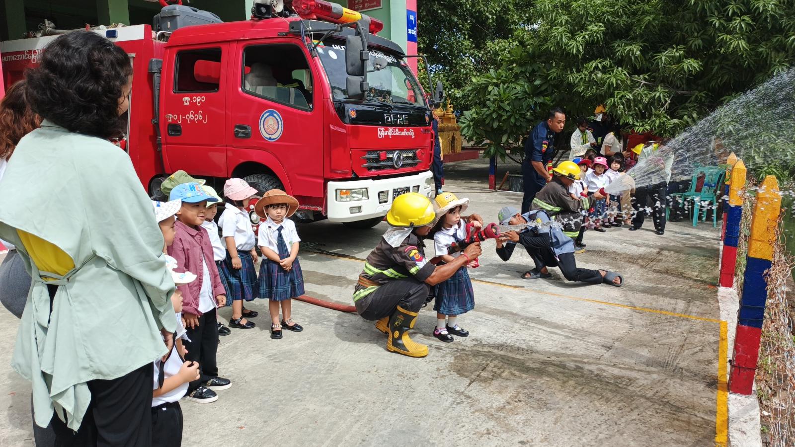 မန္တလေးတိုင်းဒေသကြီး၊ မဟာအောင်မြေခရိုင်၊ မဟာအောင်မြေမြို့နယ်တွင် LCIS International Preschool ကိုယ်ပိုင်ကျောင်းမှ ကျောင်းသား၊သူလေးများက မီးသတ်ဦးစီးဌာနရှိ မီးငြှိမ်းသတ်ရေး ပစ္စည်းများ၊ ရှာဖွယ်ကယ်ဆယ်ရေးသုံးပစ္စည်းများဖြင့်သရုပ်ပြခြင်းများကို စက်တင်ဘာ ၁၂ ရက်နေ့ နံနက်ပိုင်းက နောက်ဆုံးတတိယမြောက်အနေဖြင့် လာရောက်လေ့လာကြည့်ရှုခဲ့ကြောင်း သိရသည်။