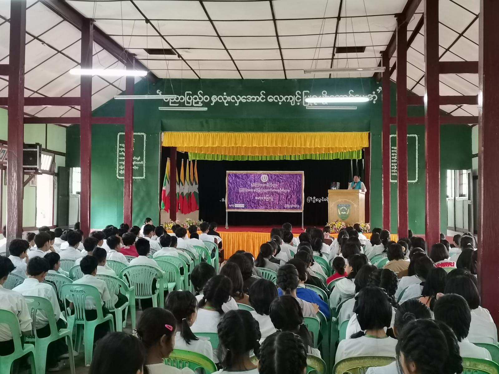 ဆက်လက်၍ မေးမြန်းဆွေးနွေးချက်များအား ပြန်လည်ဖြေကြားပေးခဲ့သော ကျောင်းသား၊ ကျောင်းသူများအား တာ၀န်ရှိသူများက ဆုများပေးအပ်ချီးမြှင့်ခဲ့ပြီးနောက် ပြင်ဦးလွင်ခရိုင် ပြန်ကြားရေးနှင့်ပြည်သူ့ဆက်ဆံရေးဦးစီးဌာနမှ တာ၀န်ရှိသူများသည် ကျောင်းသား၊ ကျောင်းသူများအား အသိပညာပေး နံရံကပ်စာစောင်များ ၊သုတ၊ရသစာစောင်များ ခင်းကျင်းပြသပေးခဲ့သည်။ အဆိုပါ အသိပညာပေး ဟောပြောပွဲသို့ ကျောင်းသား၊ ကျောင်းသူ(၁၅၀)ဦး တက်ရောက်ခဲ့သည်။