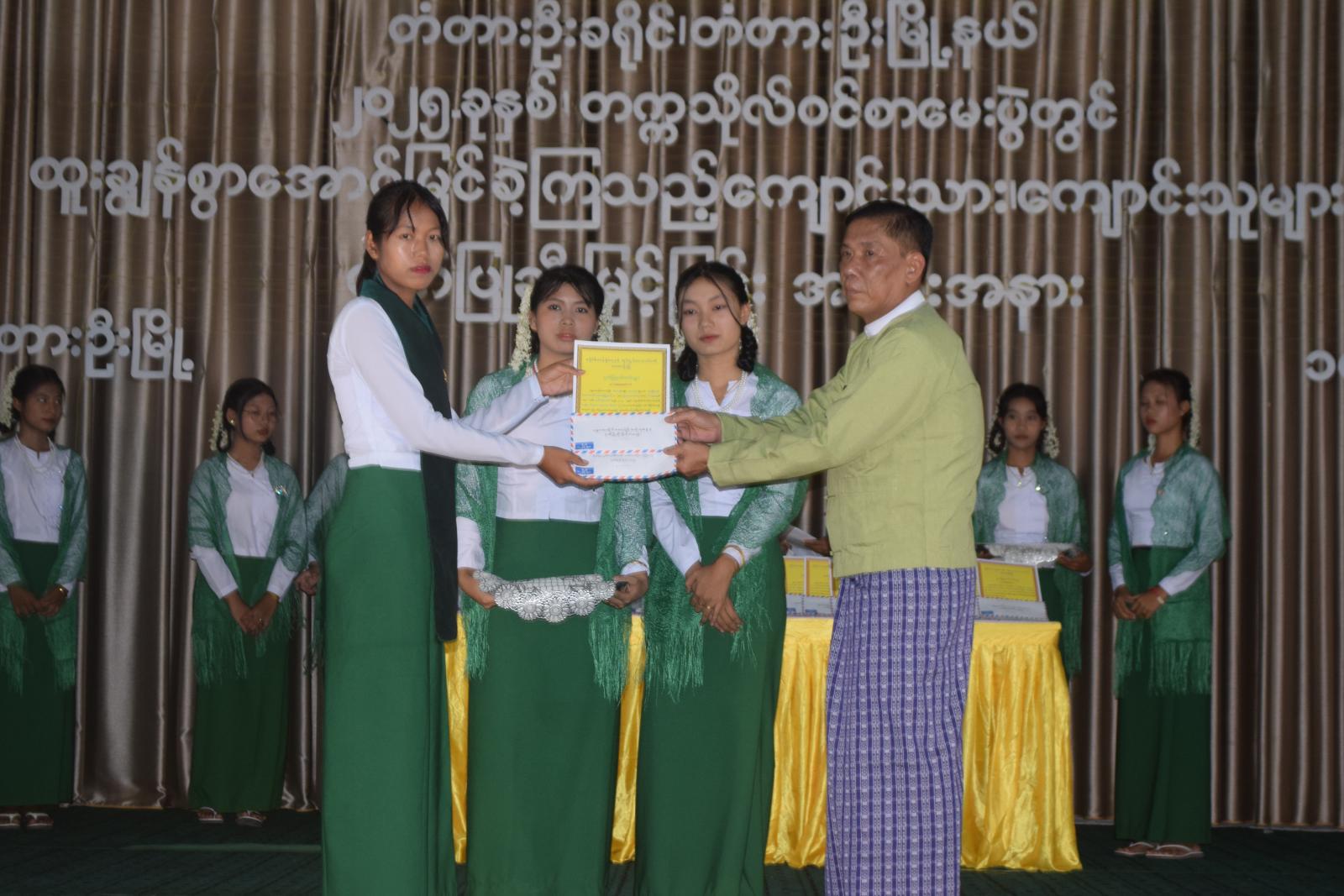 ဆက်လက်၍ တောင်ဘီလူအခြေခံပညာအထက်တန်းကျောင်း၊ ကျောင်းသား၊ ကျောင်းသူများက” ဘက်စုံပညာကိုယ်ရည် ဒို့လှမ်းချီ “ သီချင်းဖြင့် ဖျော်ဖြေပြီး ဂုဏ်ထူးရကျောင်းသား၊ ကျောင်းသူများကို ခရိုင်ပညာရေးကြီးကြပ်မှုကော်မတီဥက္ကဋ္ဌ၊ ခရိုင်အုပ်ချုပ်ရေးမှူးနှင့် တာဝန်ရှိသူများ၊ မြို့နယ်ပညာရေးကြီးကြပ်မှု ကော်မတီဥက္ကဋ္ဌ၊ မြို့နယ်အုပ်ချုပ်ရေးမှူး ဦးဖြိုးဇော်ကိုကိုနှင့် တာဝန်ရှိသူများက ဆုများကိုအသီးသီး ပေးအပ်ချီးမြှင့်ပေးကြသည်။