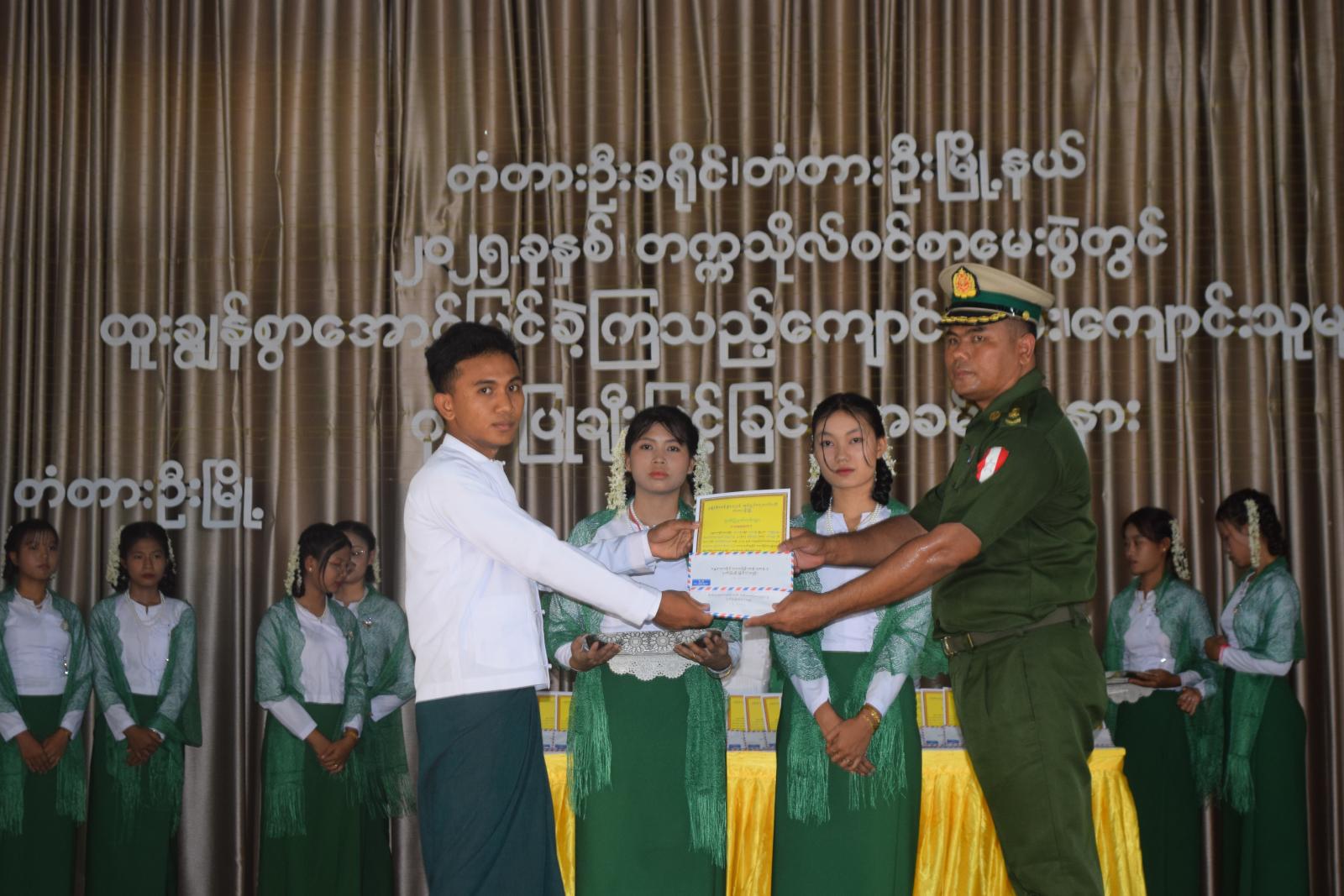 အခမ်းအနားတွင် တံတားဦးခရိုင် ပညာရေးကြီးကြပ်မှုကော်မတီဥက္ကဋ္ဌ၊ ခရိုင်အုပ်ချုပ်ရေးမှူး ဦးကျော်ငြိမ်းက အမှာစကားပြောကြားရာတွင် ၂၁ ရာစုကာလသည် ပညာခေတ်ဖြစ်သည့်အားလျော်စွာ အသိပညာ၊ အတတ်ပညာ၊ နည်းပညာတို့နှင့် လူ့ဘောင်သစ်ကို တည်ထောင်နေကြသည့် ကာလတွင် လူတိုင်းစာတက်မြောက်ရေးသည် အလွန်အရေးကြီးပါကြောင်း၊ ဒါ့အပြင်ပညာရေးကဏ္ဍတွင် ရုပ်ပိုင်း ဆိုင်ရာနှင့် စိတ်ပိုင်းဆိုင်ရာများ တိုးတက်အောင်မြင်ရေးအတွက် အလေးထားဆောင်ရွက်ပေးသင့်ပါကြောင်း၊ ကျေိာင်းနေအရွယ်ကလေးများအားလုံး ကျောင်းသို့ရောက်ရှိရေး၊ကျောင်းနေမြဲရေးနှင့် ကျောင်းပညာပြီးဆုံးသည်အထိ ပညာသင်ယူနိုင်ရေး၊ ကျောင်းသား၊ ကျောင်းသူများအနေဖြင့် ရှေ့ဆက်အသက်မွေးဝမ်းကျောင်းပညာနဲ့ အဆင့်မြင့်ပညာများကို သင်ယူရာတွင် အင်ပြည့်အားပြည့် ကြိုးစားသင်ယူစေလိုကြောင်း အကျယ်တဝင့် ရှင်းလင်းပြောကြားသည်။