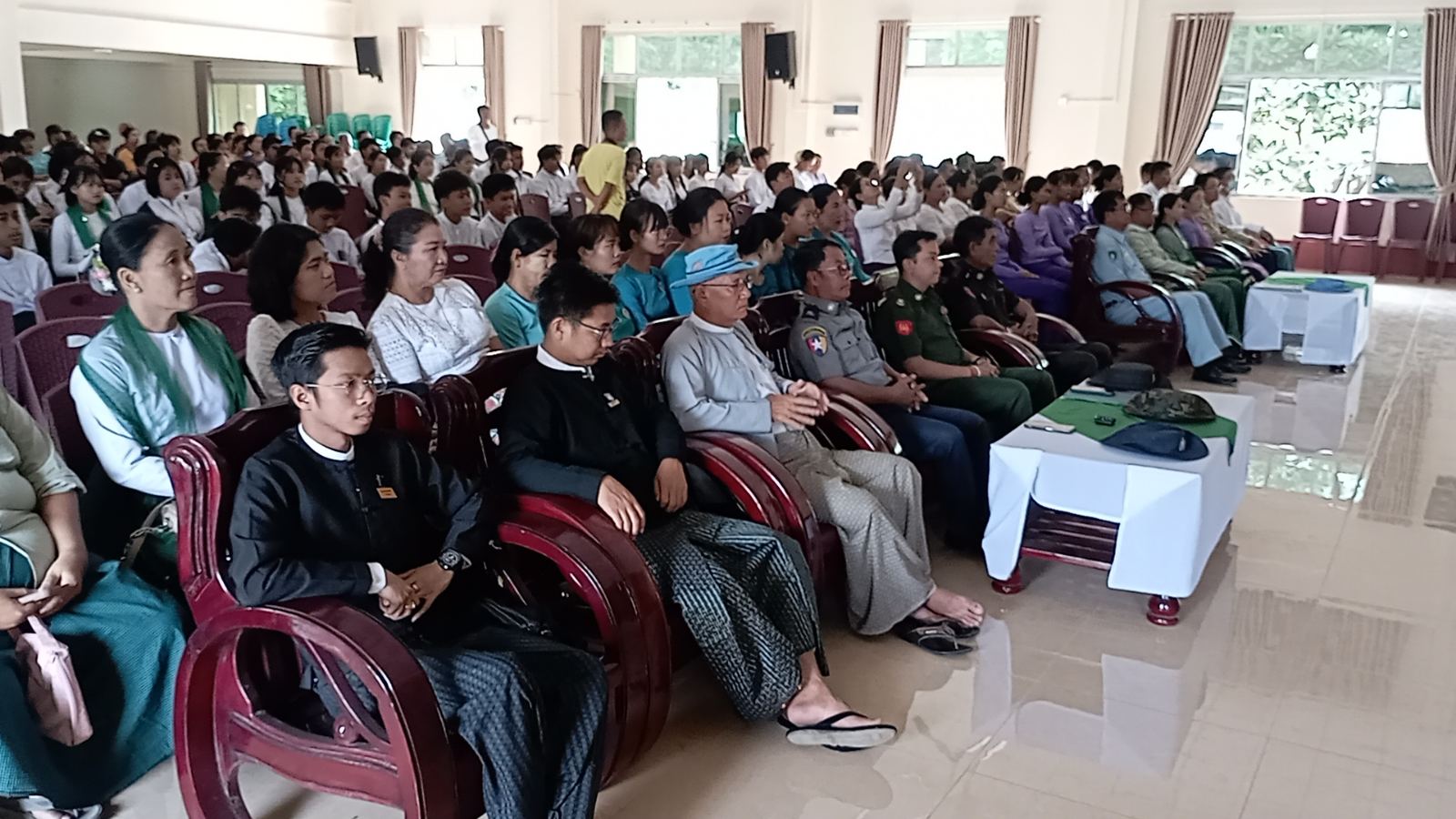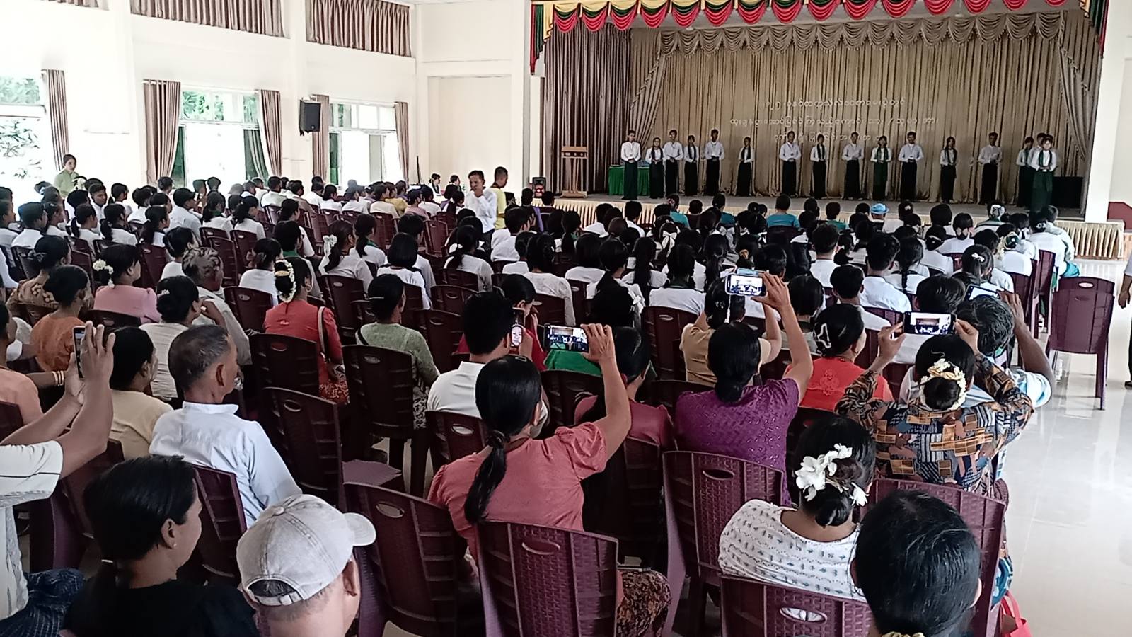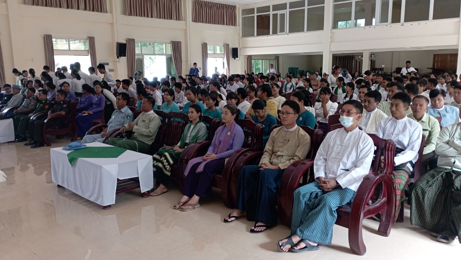 ဂုဏ်ပြုဆုချီးမြှင့်ပွဲအခမ်းအနားသို့ မြို့နယ်စီမံခန့်ခွဲရေးနှင့် အုပ်ချုပ်ရေးကော်မတီဥက္ကဋ္ဌ ဦးမင်းအောင်နှင့်အဖွဲ့၀င်များ၊ မြို့နယ်ပညာရေးမှူး၊ မြို့နယ်အဆင့်ဌာနဆိုင်ရာများ၊ မြို့နယ်အမျိုးသမီးရေးရာအဖွဲ့ဥက္ကဋ္ဌနှင့်အဖွဲ့၀င်များ၊ မြို့နယ်မိခင်နှင့်ကလေးစောင့်ရှောက်ရေးအသင်းအဖွဲ့ဝင်များ၊ ဆရာ၊ ဆရာမများ၊ ကျောင်းသားမိဘများနှင့် ကျောင်းသား၊ ကျောင်းသူများ စုစုပေါင်းအင်အား (၂၀၀) ဦးတက်ရောက်ခဲ့ကြောင်းသိရသည်။