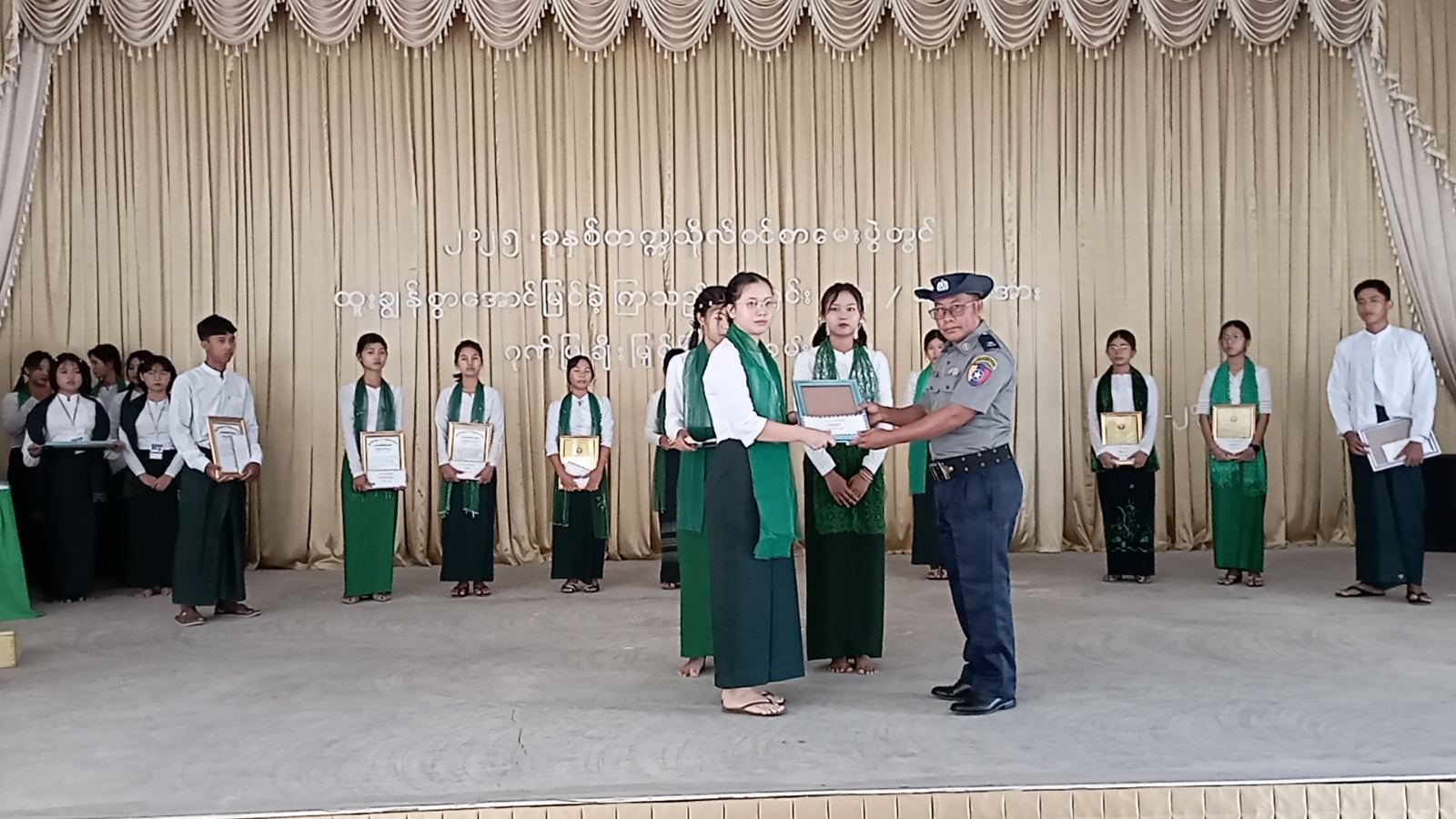 မန္တလေးတိုင်းဒေသကြီး၊ ကျောက်ဆည်ခရိုင်၊ မြစ်သားမြို့နယ်တွင် ၂၀၂၅ ခုနှစ် တက္ကသိုလ်ဝင်စာမေးပွဲ ထူးချွန်စွာအောင်မြင်ခဲ့သည့် ကျောင်းသား၊ ကျောင်းသူများအား ဂုဏ်ပြုဆုချီးမြှင့်ပွဲအခမ်းအနားကို စက်တင်ဘာ ၁၂ ရက်နေ့ နံနက် ၉ နာရီက မြစ်သားမြို့နယ် ရွှေသူဌေးရပ်ကွက်ရှိ မြို့နယ်ခန်းမ၌ကျင်းပပြုလုပ်ခဲ့သည်။