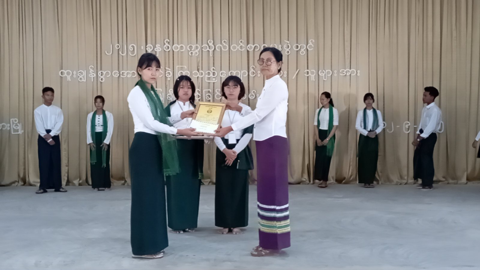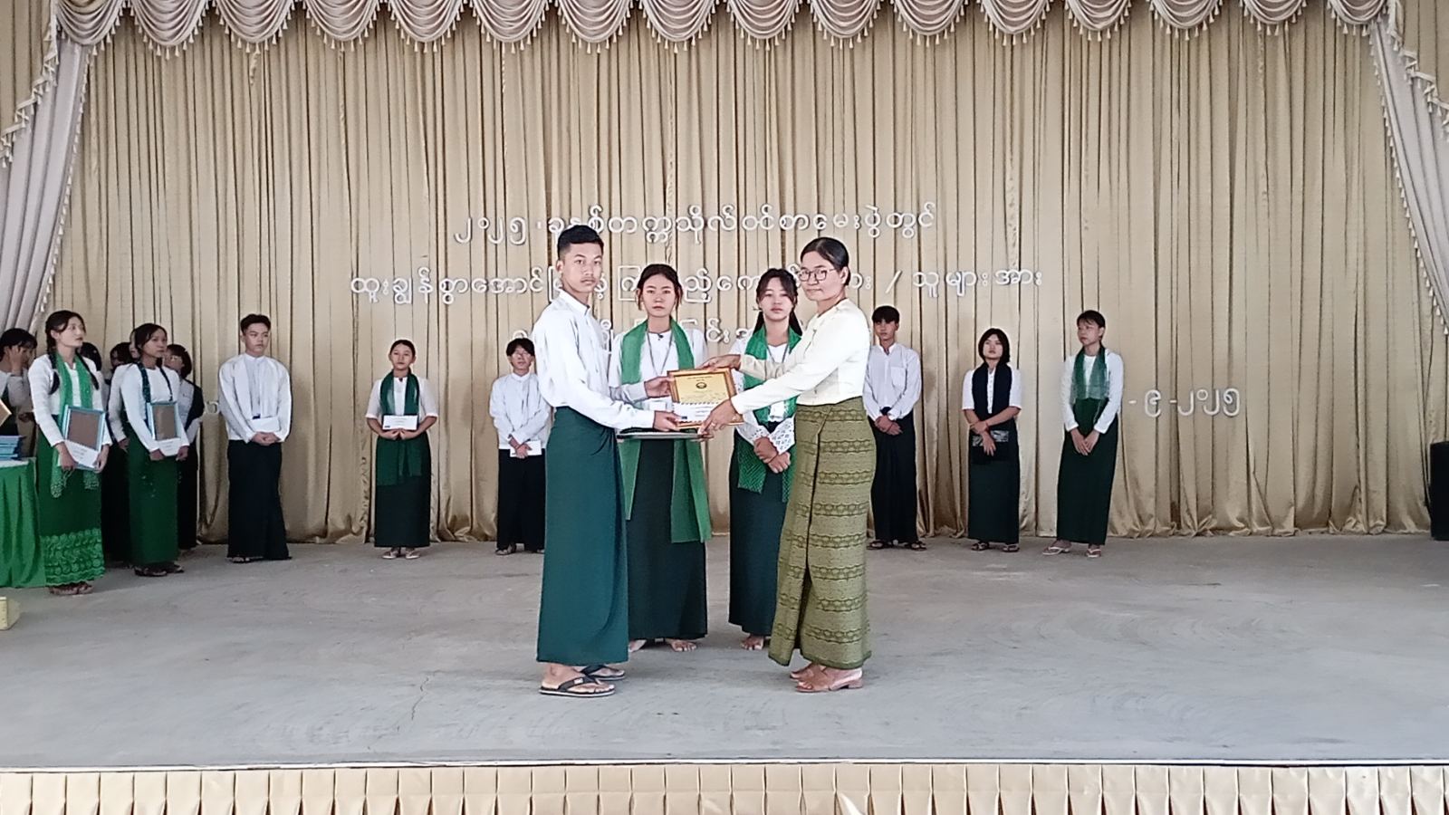 ရှေးဦးစွာ ကျောင်းသား၊ ကျောင်းသူများ၏ “မြန်မာ့ကျောင်း” သီချင်းဖြင့်အခမ်းအနား စတင် ဖွင့်လှစ်ပြီး မြို့နယ်စီမံခန့်ခွဲရေးနှင့်အုပ်ချုပ်ရေးကော်မတီဥက္ကဋ္ဌ ဦးမင်းအောင်က ဂုဏ်ပြုအမှာစကားပြောကြားခဲ့သည်။ ဆက်လက်၍ ၂၀၂၅ ခုနှစ် တက္ကသိုလ်၀င်စာမေးပွဲတွင် ထူးချွန်စွာ အောင်မြင်ခဲ့သော ၂ ဘာသာဂုဏ်ထူးရှင် (၄၆) ဦး၊ ၁ ဘာသာဂုဏ်ထူးရှင် (၅၈)ဦးတို့အား မြို့နယ်စီမံခန့်ခွဲရေးနှင့်အုပ်ချုပ်ရေးကော်မတီဥက္ကဋ္ဌ ဦးမင်းအောင်နှင့်အဖွဲ့ဝင်များ၊ မြို့နယ်ဌာနဆိုင်ရာ တာ၀န်ရှိသူများက ဂုဏ်ပြုမှတ်တမ်းလွှာနှင့်ချီးမြှင့်ငွေများကို ပေးအပ်ခဲ့ကြပြီးကျောင်းသား၊ ကျောင်းသူများက “ပြည်မြန်မာ” သီချင်းဖြင့် သီဆိုဖျော်ဖြေခဲ့ကြကြောင်း သိရသည်။