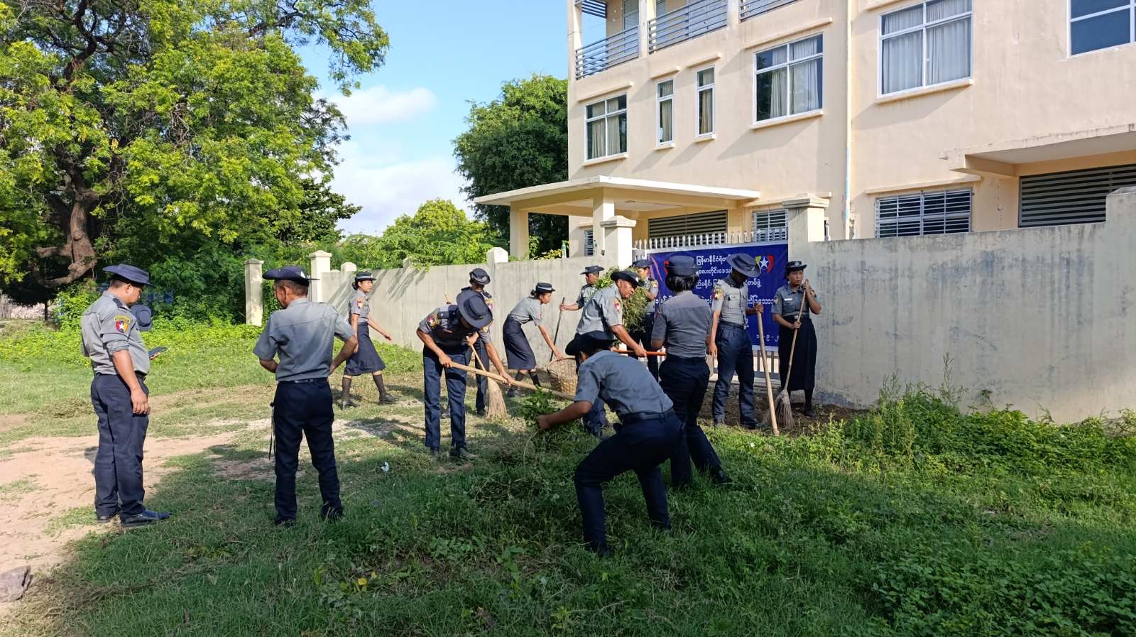 အဆိုပါစုပေါင်းသန့်ရှင်းရေးဆောင်ရွက်ရာတွင် မြို့နယ်ရဲတပ်ဖွဲ့မှူးရုံးမှ ရဲမှူးဌေးဝင်းဦးဆောင်၍ မြို့နယ်ရဲတပ်ဖွဲ့ရုံးမှအရာရှိများနှင့် မြို့မရဲစခန်းမှစခန်းမှူး လင်းလင်းထွန်းနှင့်တပ်ဖွဲ့ဝင်များ အင်အားစုစုပေါင်း (၂၅) ဦးတို့မှ ပြည်သူ့ဆေးရုံဝန်းအတွင်း၊ အပြင်ရှိအမှိုက်များ၊ သစ်ရွက်ခြောက်များရှားရှင်းလင်းခြင်း၊ သစ်ပင်များ၊ သစ်ကိုင်း၊ ခြုံနွယ်များရှင်းလင်းခြင်း အမြင်တင့်တယ်စေရေးနှင့် လေဝင်/ လေထွက်ကောင်းမွန်စေရေး ခုတ်ထွင်ဖယ်ရှား ရှင်းလင်းခြင်းလုပ်ငန်းများ ဆောင်ရွက်ခဲ့ကြကြောင်း သိရသည်။
