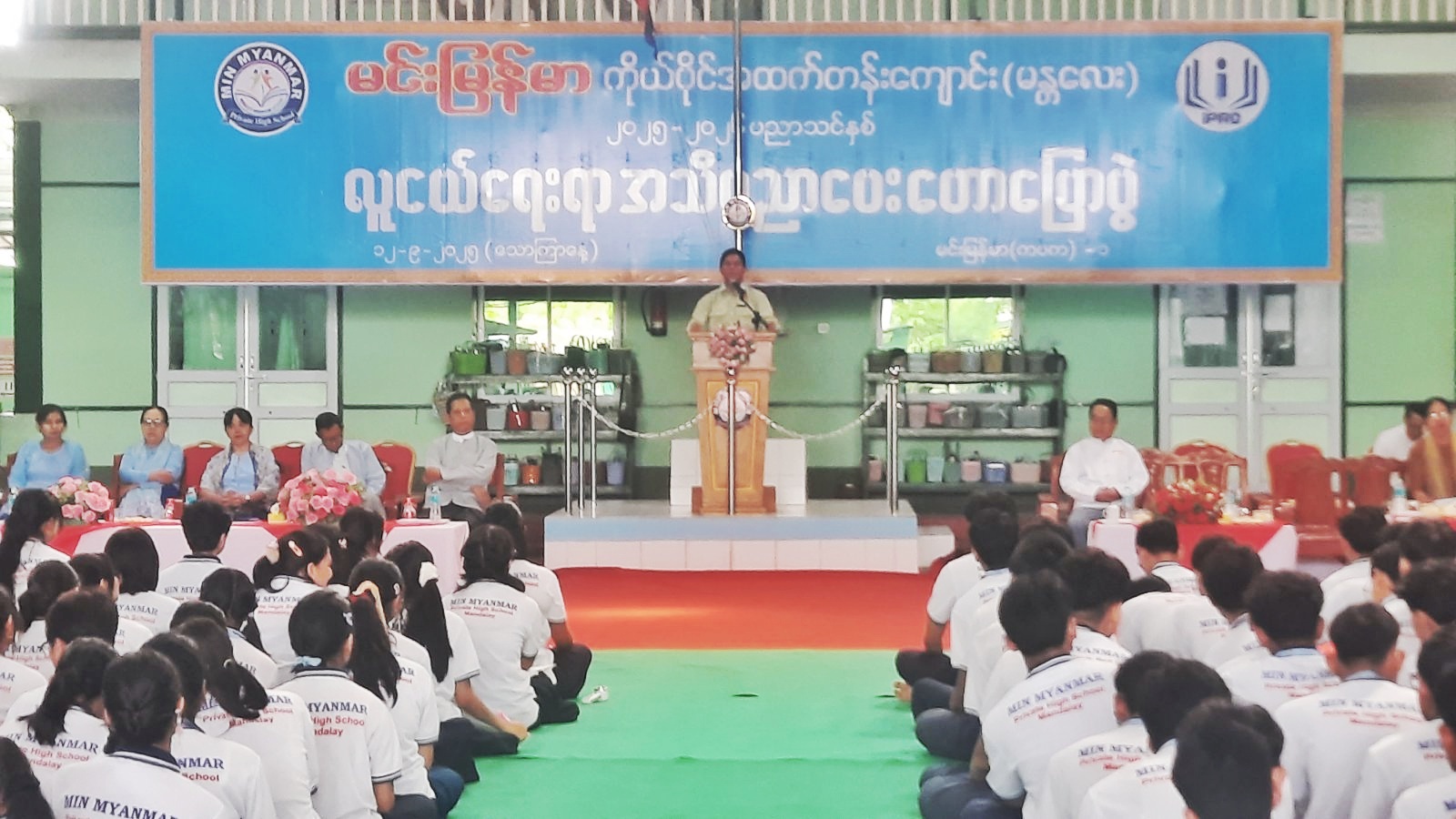 ကျောင်းသားလူငယ်များ အသိပညာဗဟုသုတ ဖွံ့ဖြိုးတိုးတက်စေရေး၊ ဗလငါးတန်နှင့်ပြည့်စုံသော လူငယ်လူရွယ်များဖြစ်ပေါ်စေရန်ရည်ရွယ်၍ ပြန်ကြားရေးနှင့်ပြည်သူ့ဆက်ဆံရေးဦးစီးဌာန အောင်မြေသာစံခရိုင်၊ အောင်မြေသာစံမြို့နယ်နှင့် မင်းမြန်မာကိုယ်ပိုင်အထက် တန်းကျောင်းတို့ပူးပေါင်း၍ လူငယ်ရေးရာအသိပညာပေးဟောပြောပွဲကို စက်တင်ဘာ ၁၂ ရက်နေ့ နံနက် ၉ နာရီခွဲက မင်းမြန်မာကိုယ်ပိုင်အထက်တန်းကျောင်း ကျောင်းခန်းမတွင် ကျင်းပဆောင်ရွက်သည်။