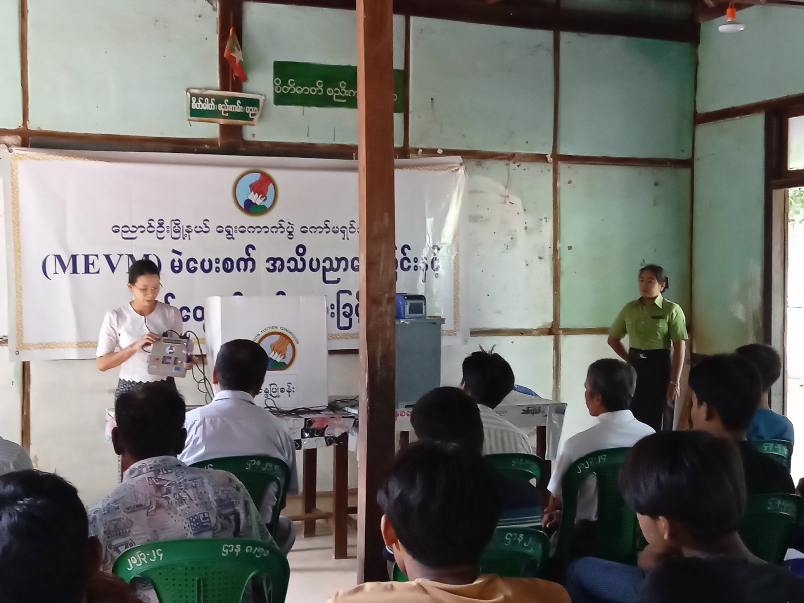 မန္တလေးတိုင်းဒေသကြီး၊ ညောင်ဦးမြို့နယ် ရွေးကောက်ပွဲကော်မရှင်အဖွဲ့ခွဲသည်၊ ကြီးကြပ်ရေးအဖွဲ့ ဌာနဆိုင်ရာတာဝန်ရှိသူများ လိုက်ပါလျှက်၊ ကုန်ကျစရိတ်သက်သာပြီး လွယ်ကူရိုးရှင်း၍ အချိန်ကုန်သက်သာသည့်အပြင်၊ ယုံကြည်စိတ်ချရမှု အပြည့်အဝရှိသော မြန်မာအီလက်ထရောနစ် မဲပေးစက်နှင့်ပတ်သက်၍ ပြည်သူများ ကျယ်ကျယ်ပြန့်ပြန့် သိရှိနားလည်စေရန်၊ အသိပညာပေးခြင်းနှင့် လက်တွေ့သရုပ်ပြသခြင်းများကို ရပ်ကွက်/ကျေးရွာ အုပ်စုများနှတွင် ကွင်းဆင်းဆောင်ရွက်လျက်ရှိရာ ယမန်နေ့နံနက် ၉ နာရီအချိန်က တောင်ဇင်းတိုက်နယ်ခွဲ ကျေးရွာများသို့ သရုပ်ပြမဲပေးစက်ဖြင့် မဲပေးခြင်းကွင်းဆင်းဆောင်ရွက် ခဲ့ကြောင်း သိရသည်။