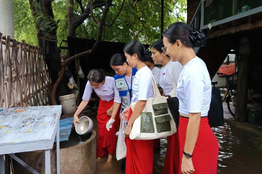 မန္တလေးတိုင်းဒေသကြီး၊ ကျောက်ဆည်ခရိုင်၊ ကျောက်ဆည်မြို့နယ်၌ မိုးရွာသွန်းမှုများပြီး ကြက်မင်းတွန်ရပ်ကွက် မြေနိမ့်ပိုင်းလူနေအိမ်များတွင် မိုးရေများဝင်ရောက်လျက်ရှိရာ စက်တင်ဘာ ၁၅ နေ့မွန်းလွဲပိုင်းက မြို့နယ်မိခင်နှင့်ကလေးကျန်းမာရေးဌာနမှ အမျိုးသမီးကျန်းမာရေးဆရာမ ဒေါ်နှင်းနှင်းသူ ဦးဆောင်သည့် အရေးပေါ်တုံ့ပြန်ဆောင်ရွက်ရေးအဖွဲ့မှ ဝမ်းပျက်၊ ဝမ်းလျှောရောဂါနှင့် ခြင်ကြောင့်ဖြစ်ပွားနိုင်သည့် ရောဂါများမဖြစ်ပွားစေရေး ကျန်းမာရေးအသိပညာပေးခြင်း၊ ကလိုရင်းဆေးခတ်ခြင်းနှင့် ရေသန့်ဆေးပြားများ ပေးဝေခဲ့ကြောင်း သိရသည်။