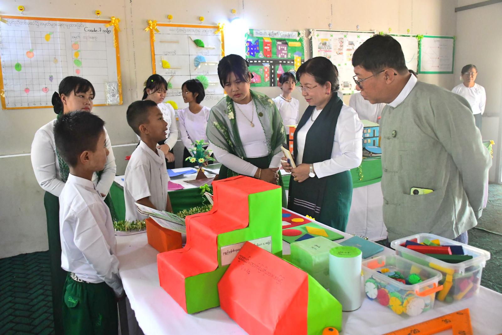 ဦးစွာအခမ်းအနားတွင် Grade 5 တန်း ကျောင်းသူ မယွန်းချယ်ရီကိုကိုက ရွှင်လန်းနိုင်ကြပါစေ သီချင်းဖြင့် သီဆိုဖျော်ဖြေသည်။ ထို့နောက် ခရိုင်ပညာရေးမှူး ဒေါ်မော်မော်က အမှာစကားပြောကြားရာ ကျောင်းတွင်းသင်ထောက်ကူပြပွဲ ပြသဆောင်ရွက်ခြင်းဖြင့် ကျောင်းသူ၊ ကျောင်းသားများကို ပညာသင်ကြားပေးရာ အကျိုးကျေးဇူးပြုကြောင်း၊ ဆရာ၊ ဆရာမများနှင့် ကျောင်းသူ၊ ကျောင်းသားများအနေဖြင့် ပူးပေါင်းဆောင်ရွက်ရသည်ဖြစ်၍ စုပေါင်းဆောင်ရွက်တတ်သည့် အလေ့အကျင့်ရရှိရုံသာမက ဆရာနဲ့တပည့်အချင်းချင်း ပိုမိုရင်းနှီးခင်မင်ယုံကြည်မှုကိုလည်း ရရှိနိုင်တာကြောင့် ပညာသင်ကြားခြင်းလုပ်ငန်းလည်း ယခင်ထက် တိုးတက်ကောင်းမွန်လာမှာ ဖြစ်ကြောင်း စသဖြင့်ထည့်သွင်းပြောကြားသည်။ ဆက်လက်၍ ကျောင်းသူများက အောင်မြင်ပါစေ မြန်မာပြည်သီချင်းဖြင့် ကပြဖျော်ဖြေပြီး ဆရာမဒေါ်ခင်သီတာကကျေးဇူးတင်စကား ပြောကြားသည်။ ထိုနောက် ကျောင်းတွင်း သင်ထောက်ကူပြပွဲတွင် ပြသထားသည့် မြန်မာစာ၊ ပထဝီဝင်၊ သမိုင်းပြခန်း၊ အင်္ဂလိပ်စာ၊ သင်္ချာပြခန်း၊ ဓာတုဗေဒ၊ ရူပဗေဒ၊ အထွေထွေသိပ္ပံပြခန်းနှင့် ဇီဝဗေုဒ၊ ဘောဂဗေဒပြခန်းများအား ခရိုင်ပညာရေးမှူး ဒေါ်မော်မော်၊ ခရိုင်ပြန်ကြားရေးနှင့်ပြည်သူ့ဆက်ဆံရေးဦးစီးဌာန လက်ထောက်ညွှန်ကြားရေးမှူး ဦးမျိုးမင်းဇော်၊ ကျောင်းအုပ်ဆရာမကြီးဒေါ်လဲ့လဲ့စိုးနှင့် တာဝန်ရှိသူများက လှည့်လည်ကြည့်ရှုအားပေးခဲ့ကြောင်း သိရသည်။