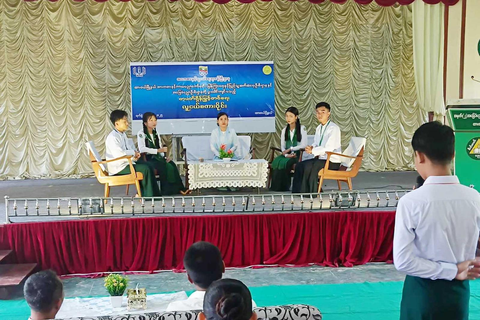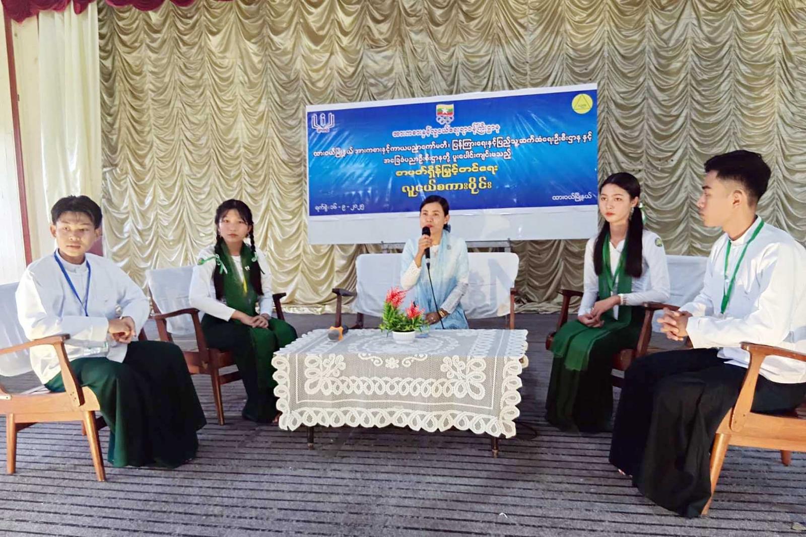 ထို့နောက်ခရိုင်ပြန်ကြားရေးနှင့်ပြည်သူ့ဆက်ဆံရေးဦးစီးဌာန၊ ဦးစီးအရာရှိ ဒေါ်မိုးမိုးခိုင် က ဦးဆောင် ဆွေးနွေးသူ (Moderator)အဖြစ်ဆောင်ရွက်ပြီး ဆွေးနွေးပြောကြားသူများအဖြစ်အမှတ်(၂) အခြေခံပညာ အထက်တန်းကျောင်မှ ကျောင်းသား/သူများဖြစ်ကြသည့် Grade-11 ကျောင်းသား မောင်အောင်ချမ်းငြိမ်း က လူငယ်နှင့် နည်းပညာ ၊ Grade-10 ကျောင်းသား မောင်ဇေယျာကျော် က လူငယ် နှင့် စာရိတ္တ၊ Grade-11 ကျောင်းသူ မဆုမြတ်နိုး က လူငယ်နှင့် မူးယစ်ဆေး၊ Grade-8 ကျောင်းသူ မဆုယွန်းထက်က လူငယ်နှင့် မျိုးချစ်စိတ် စသည့် ခေါင်းစဉ်များဖြင့် ဆွေးနွေးကြသည်။