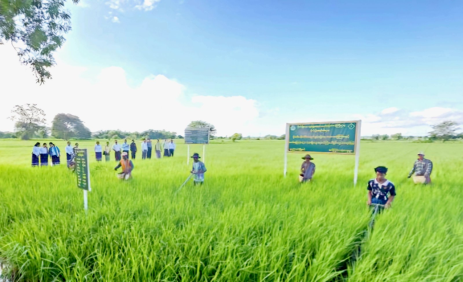 ရမည်းသင်းမြို့နယ်၊ အင်ကြင်းကန်ကျေးရွာအုပ်စု၊ ကွင်းအမှတ်(၁၁၁၂)ရှိ တောင်သူ ဦးမောင်ဇော်၏ မိုးရာသီအောင်နိုင်တိုးစပါး(၅)ဧက၌ ယူရီးယား မြေဩဇာနှင့် သဘာဝမြေဩဇာ ၁:၃ ရောစပ်၍ စက်တင်ဘာ ၁၇ ရက်နေ့ နံနက်တွင် စုပေါင်းကြဲပက်ပွဲကို ဆောင်ရွက်ခဲ့သည်။